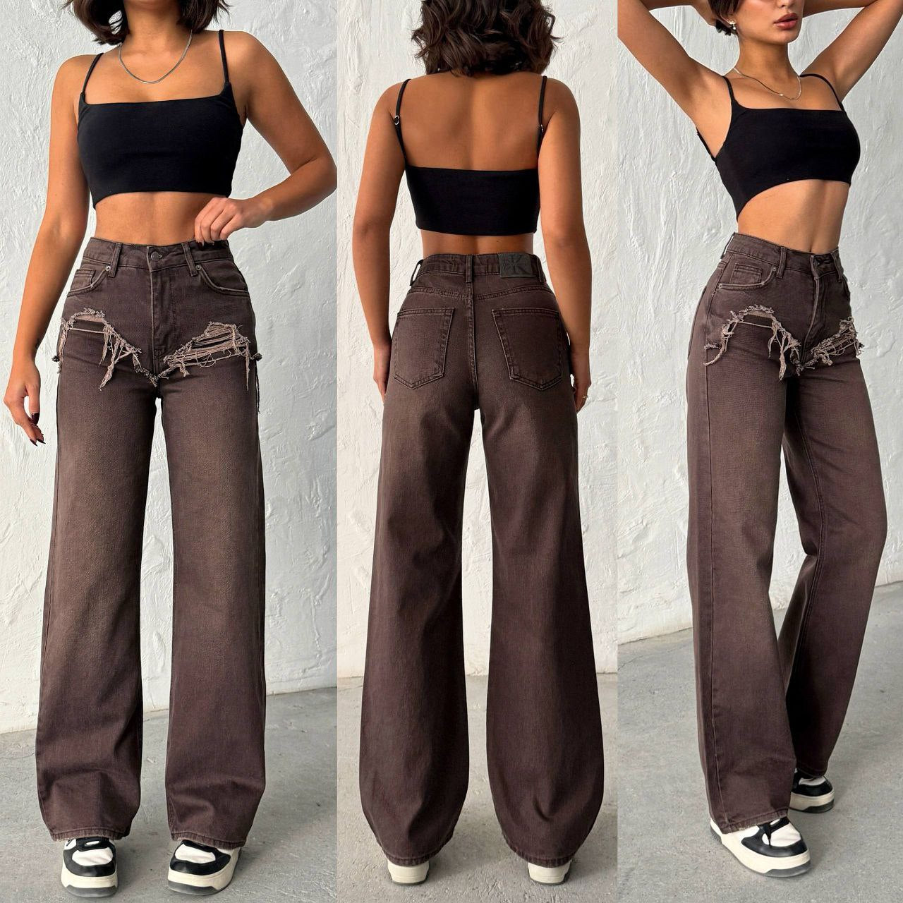 Джинси з рваними вставками | шоколад