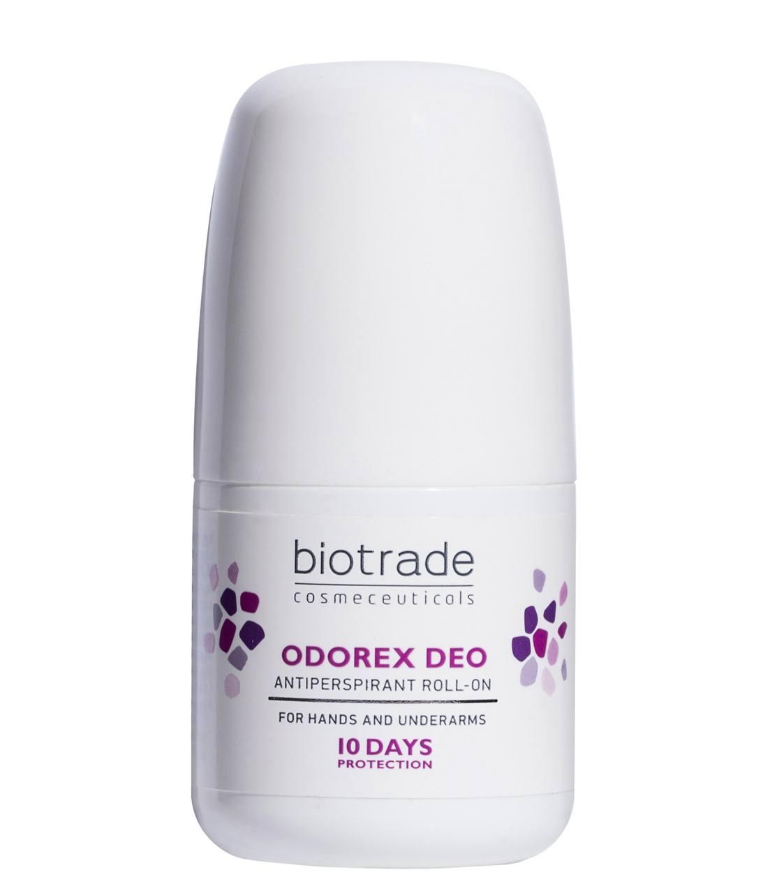 Biotrade Odorex Deo Antiperspirant Roll-On — кульковий антиперспірант тривалої дії «10 днів захисту», який стане чудовим придбанням для людей, які ведуть дуже активний спосіб життя. Гігієнічний продукт можна брати в походи, захопливі подорожі та тривалі відрядження, адже він дасть змогу почуватися неймовірно легко, комфортно та свіжо, запобігши появі неприємного запаху поту та плям на одязі.