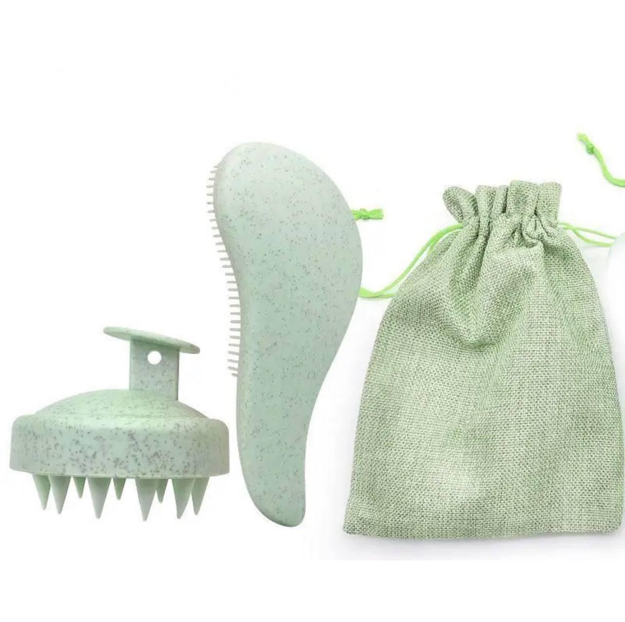 Набір для волосся в мішечку: гребінець і масажна щітка.(зелений)