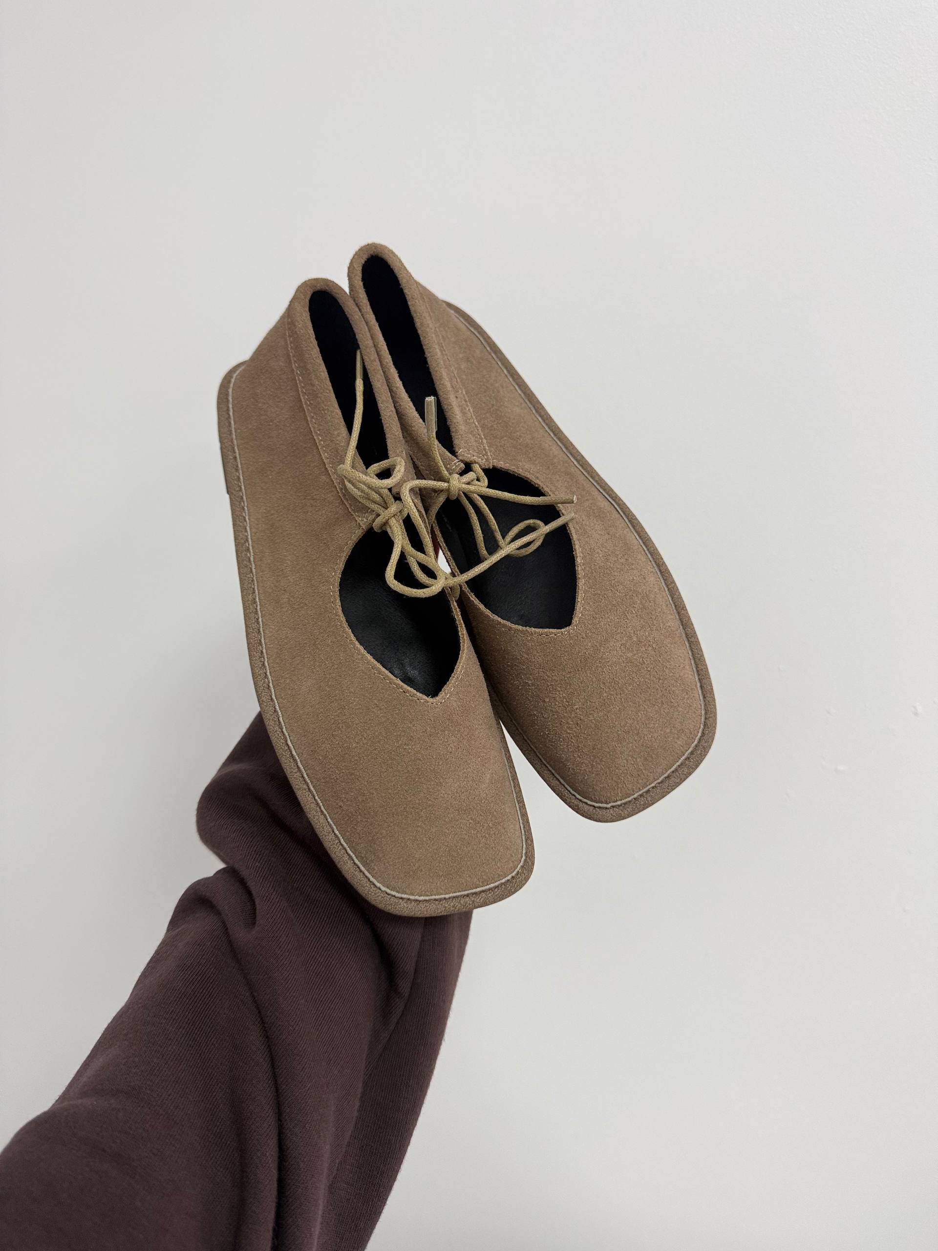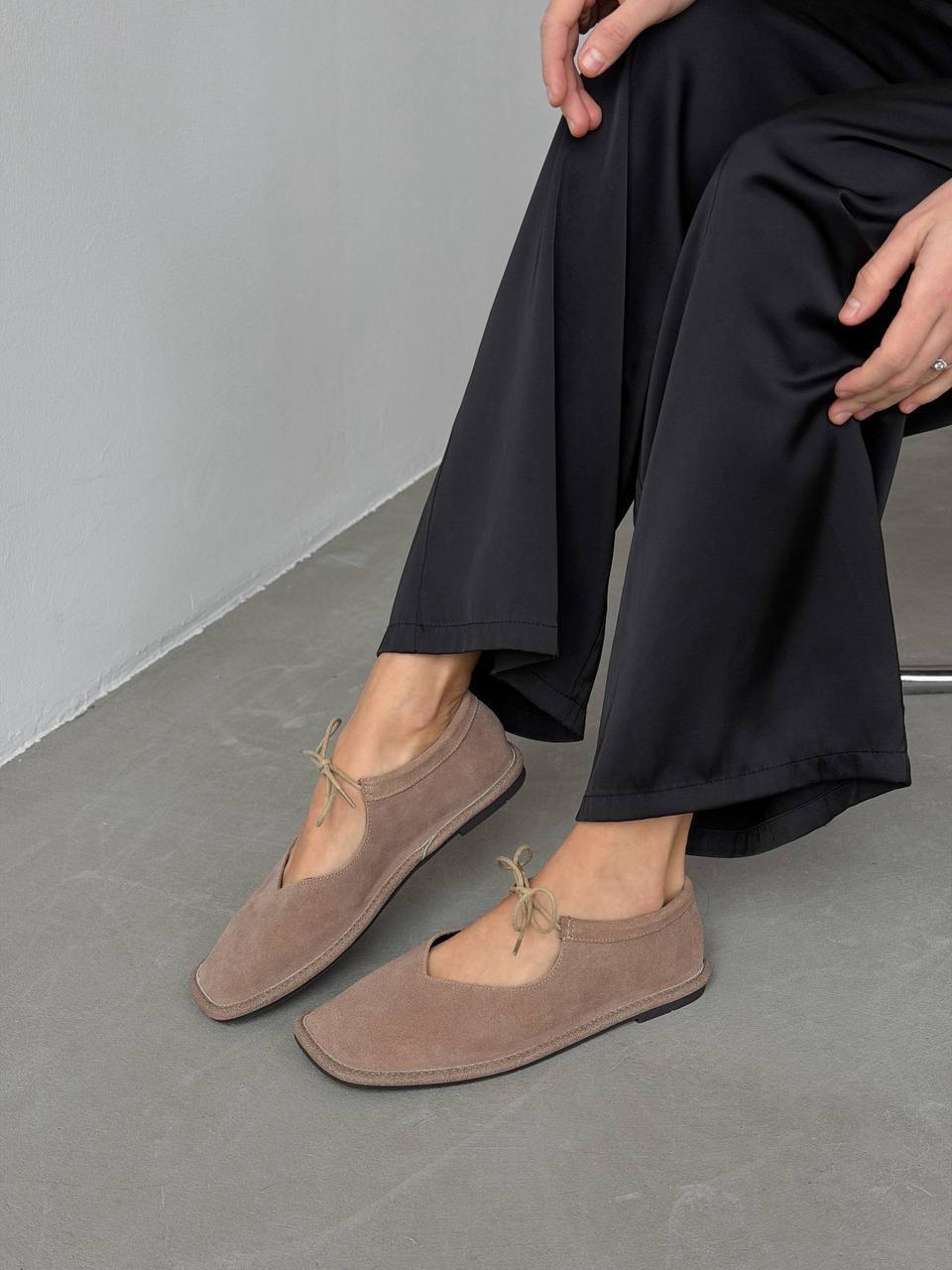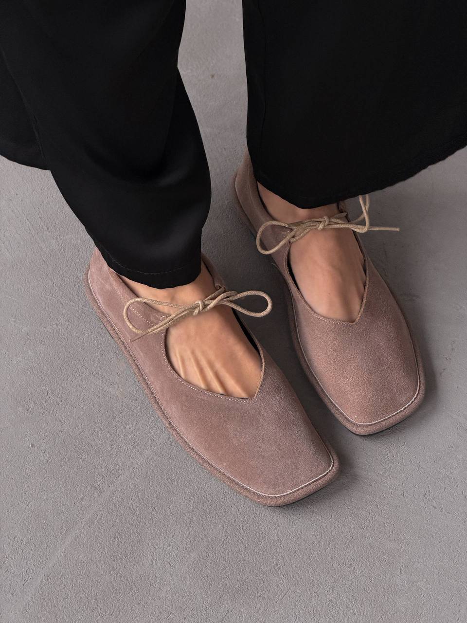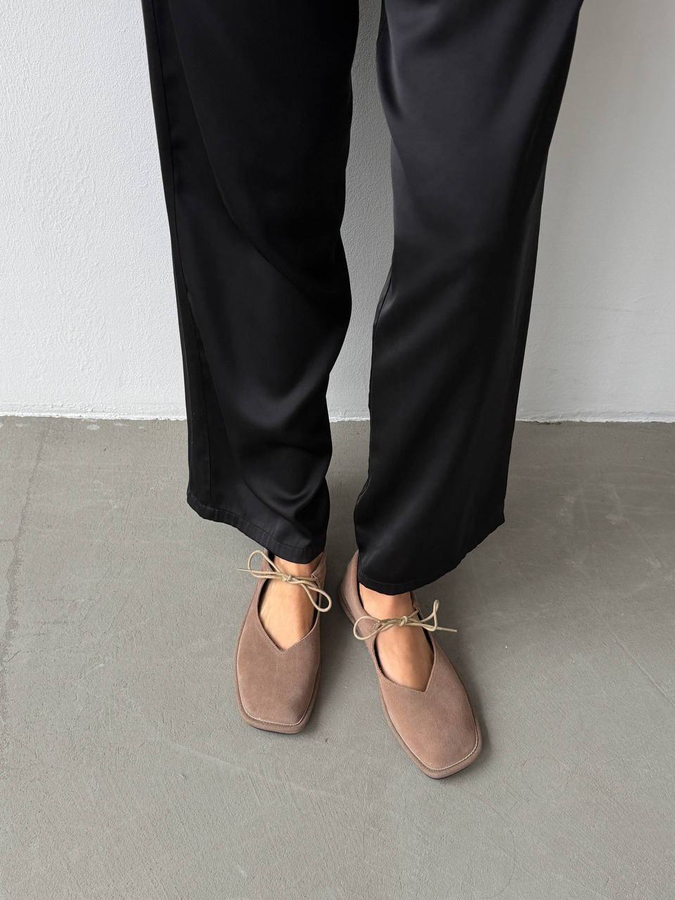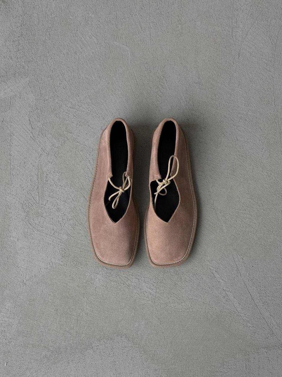 Балетки на зав'язках з анатомічно-розширеним носиком, бежевий