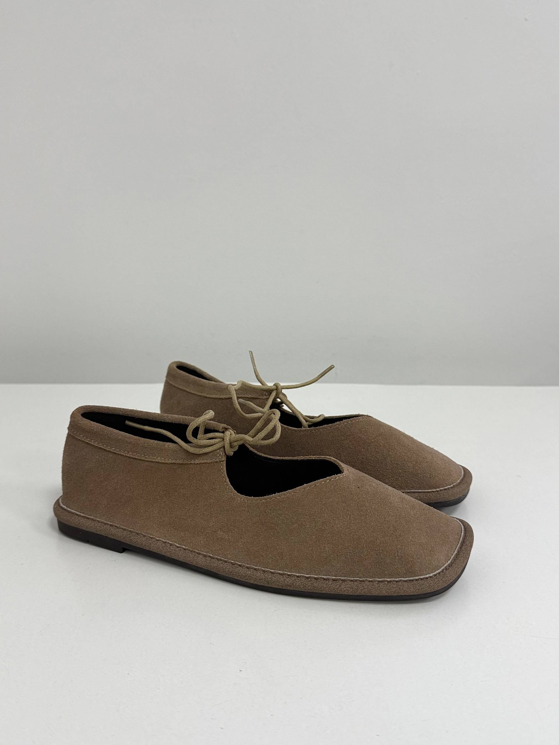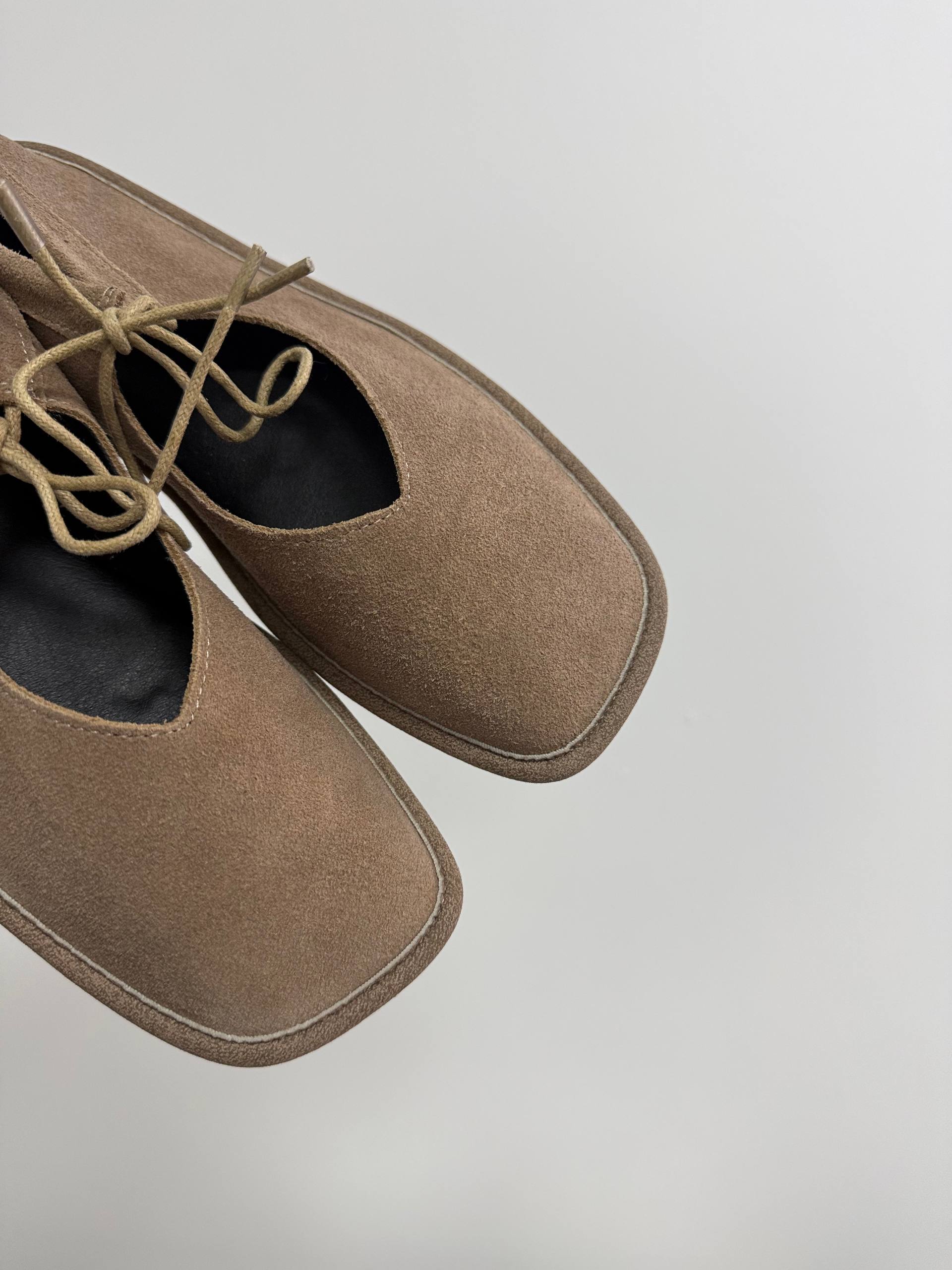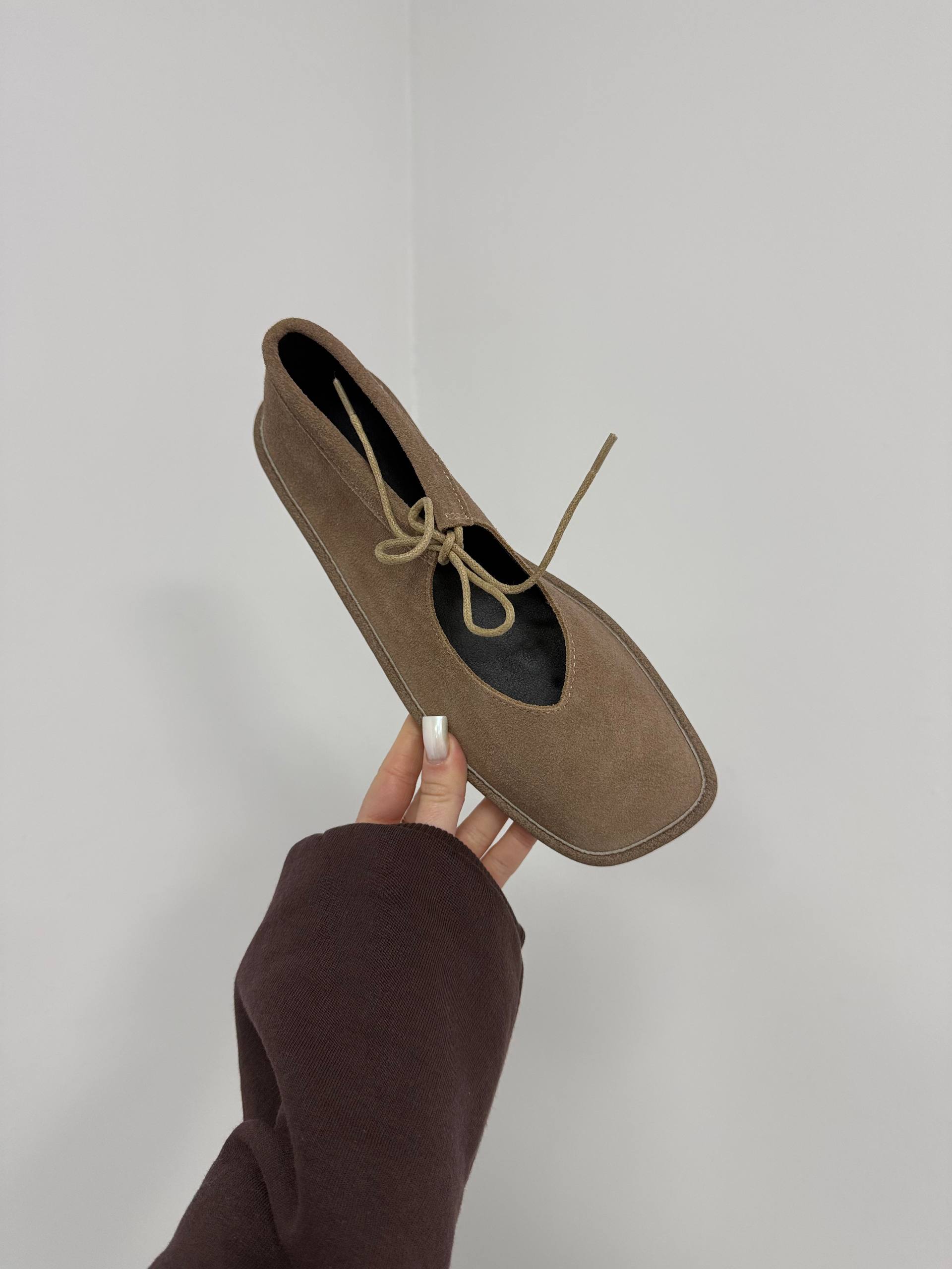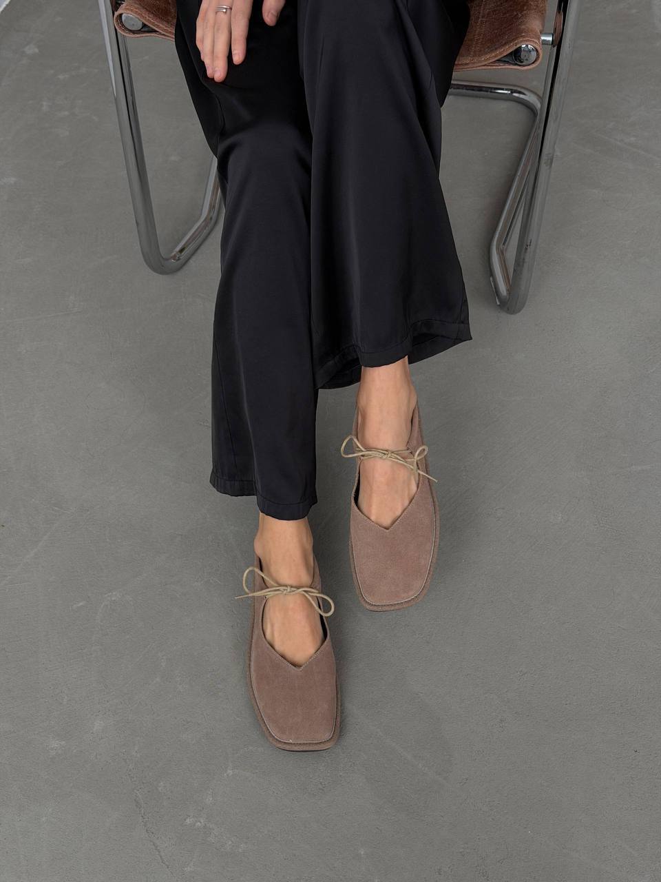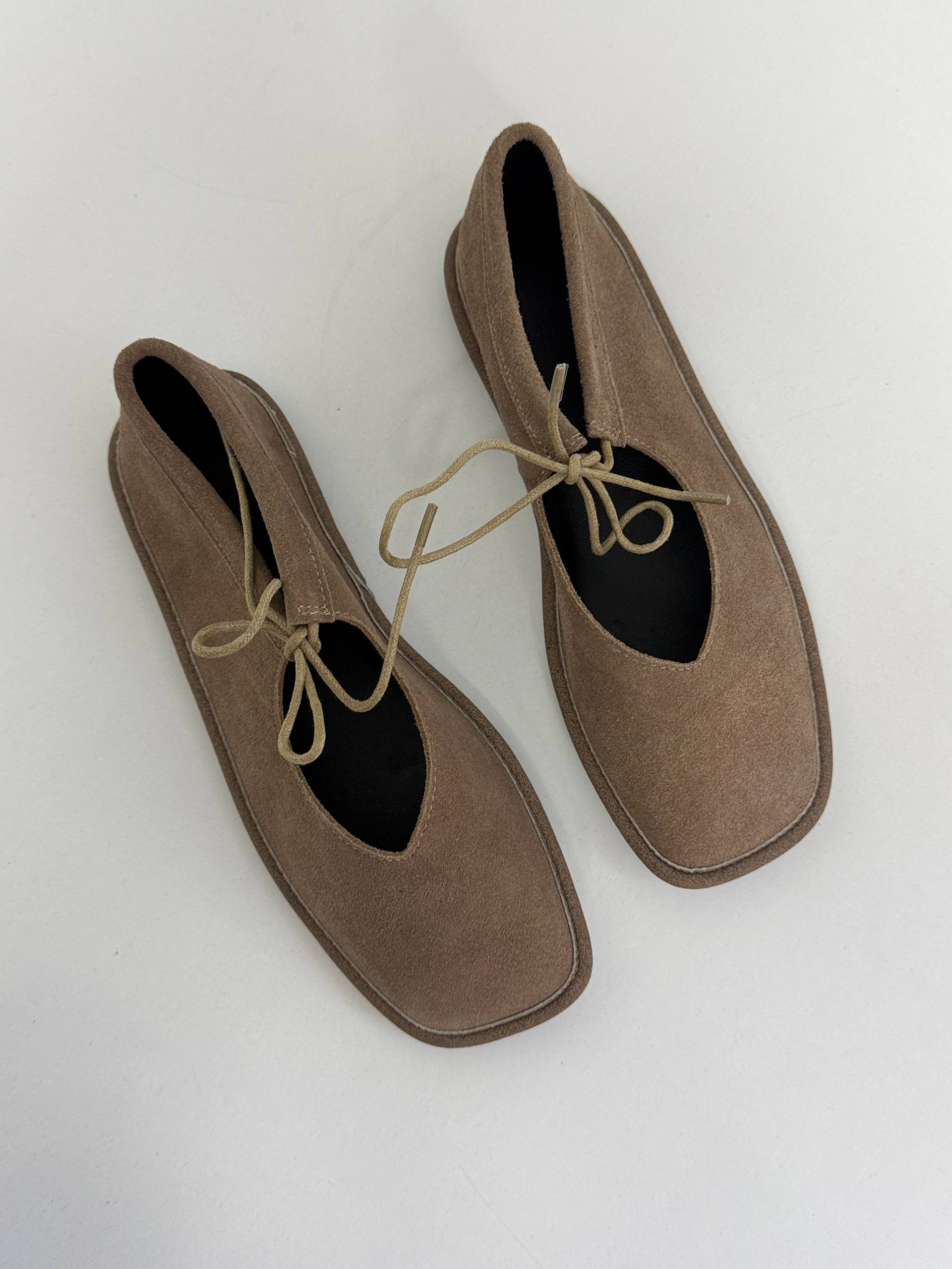 Балетки на зав'язках з анатомічно-розширеним носиком, бежевий