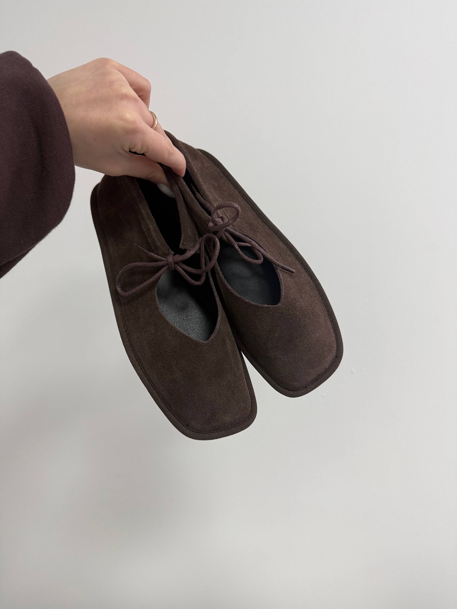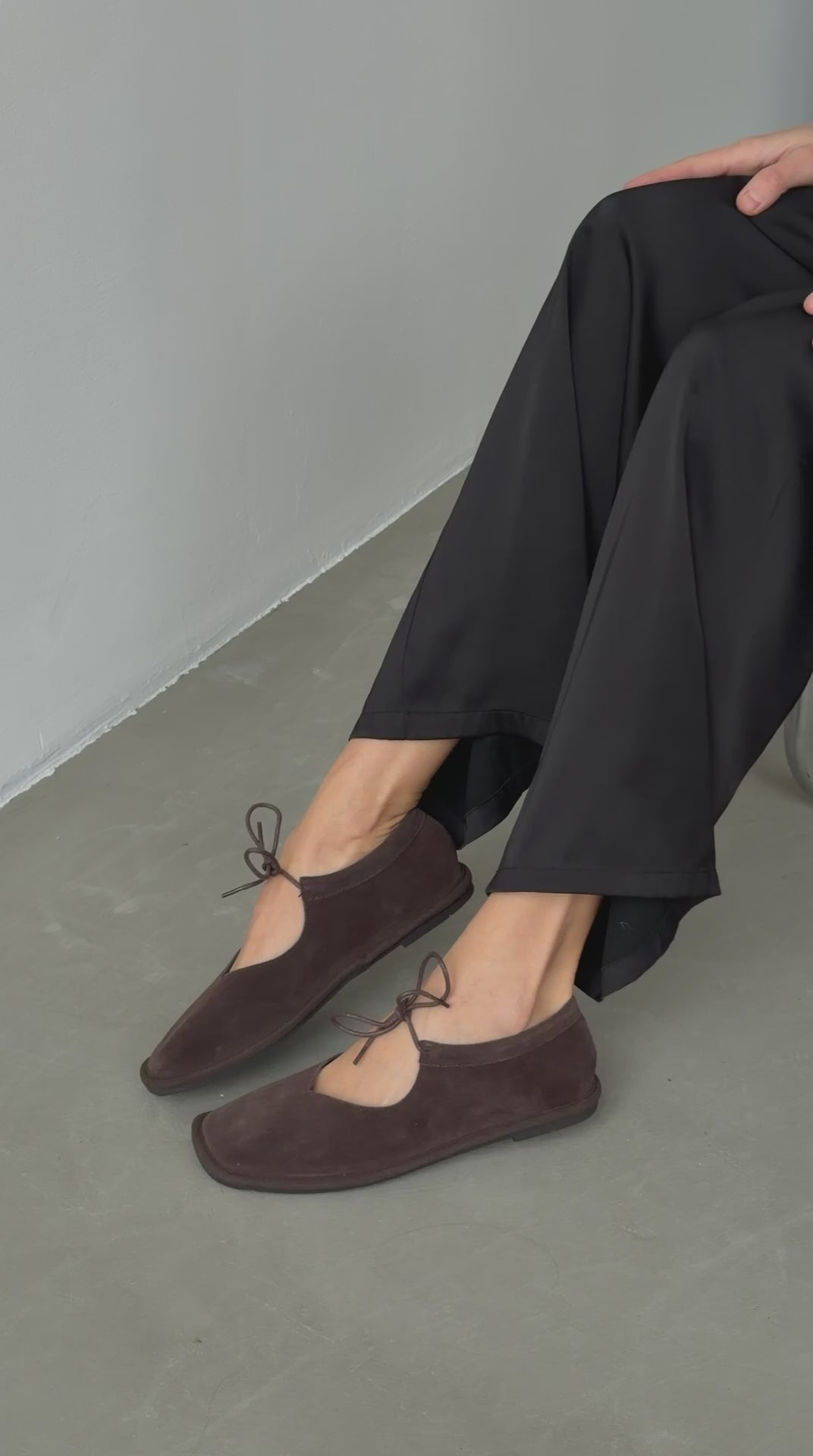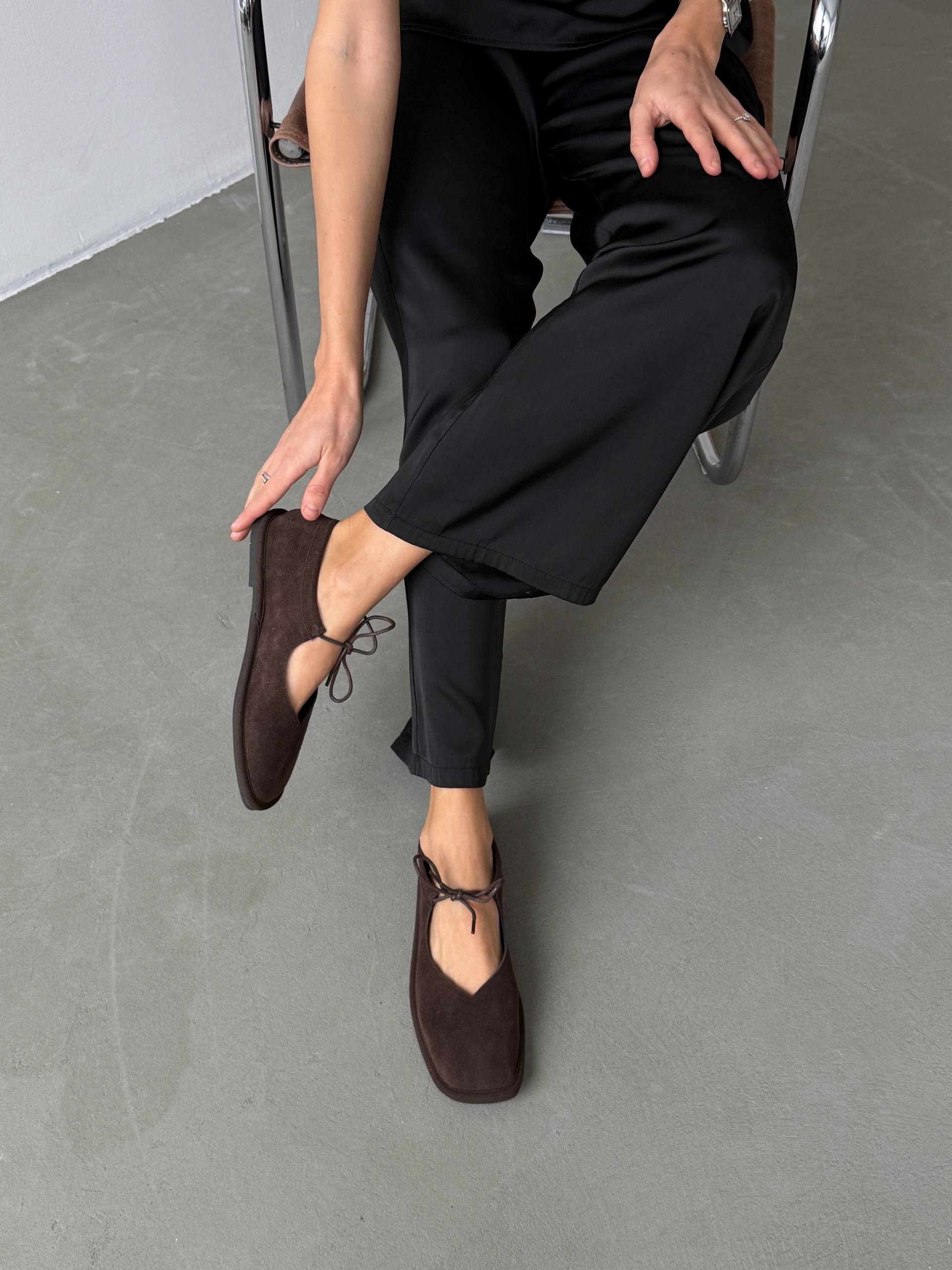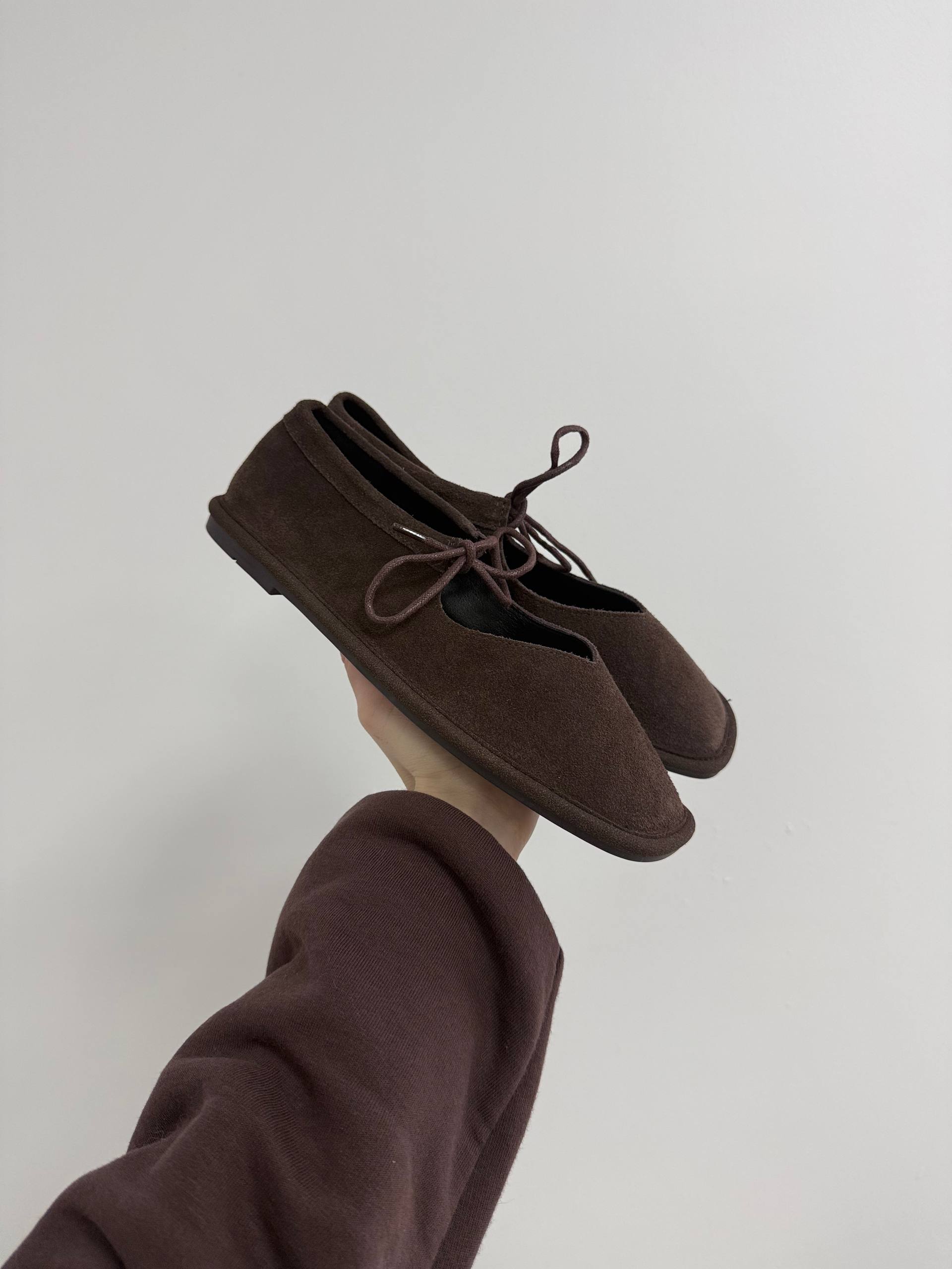Балетки на зав'язках з анатомічно-розширеним носиком, шоколад
