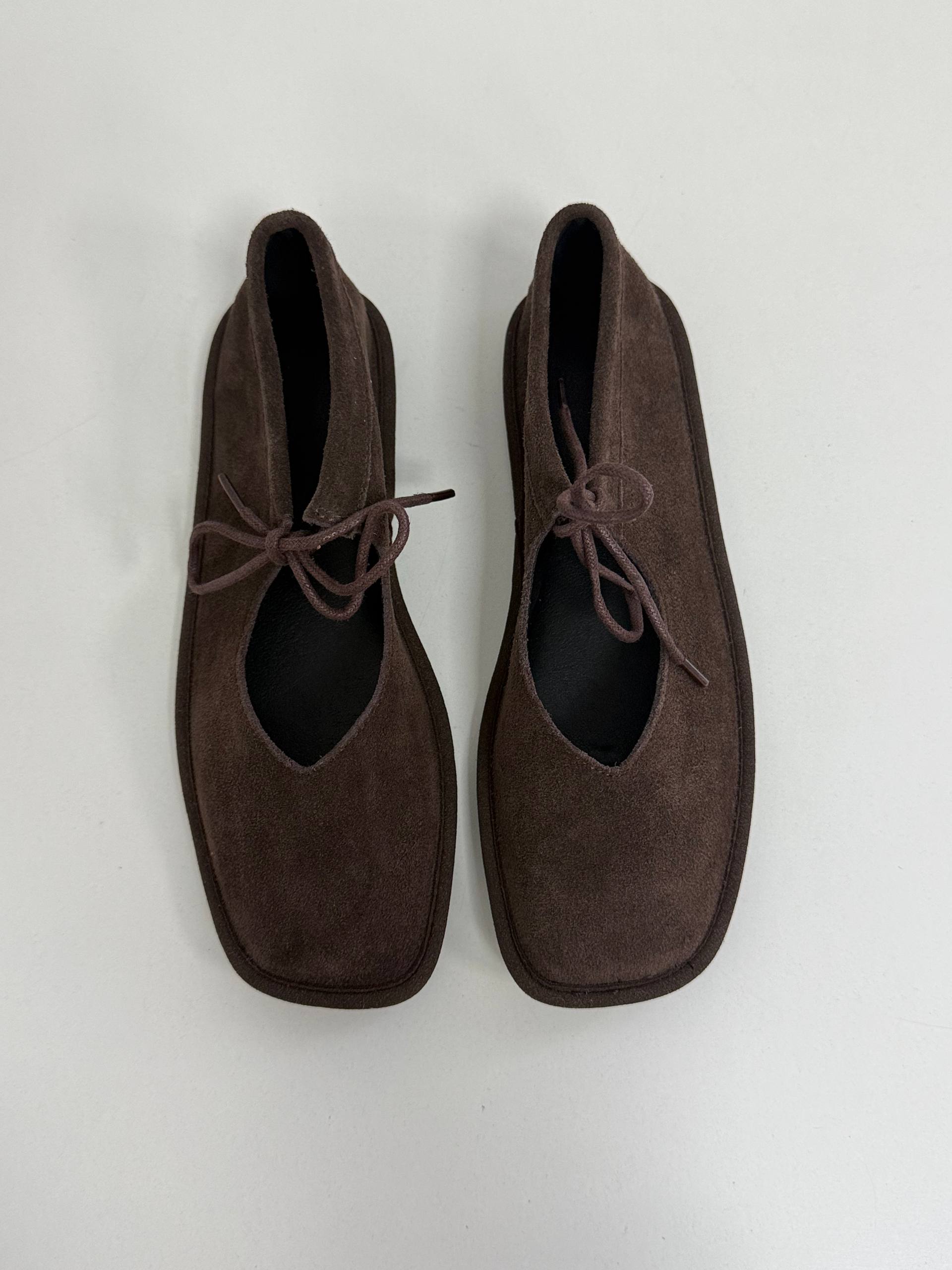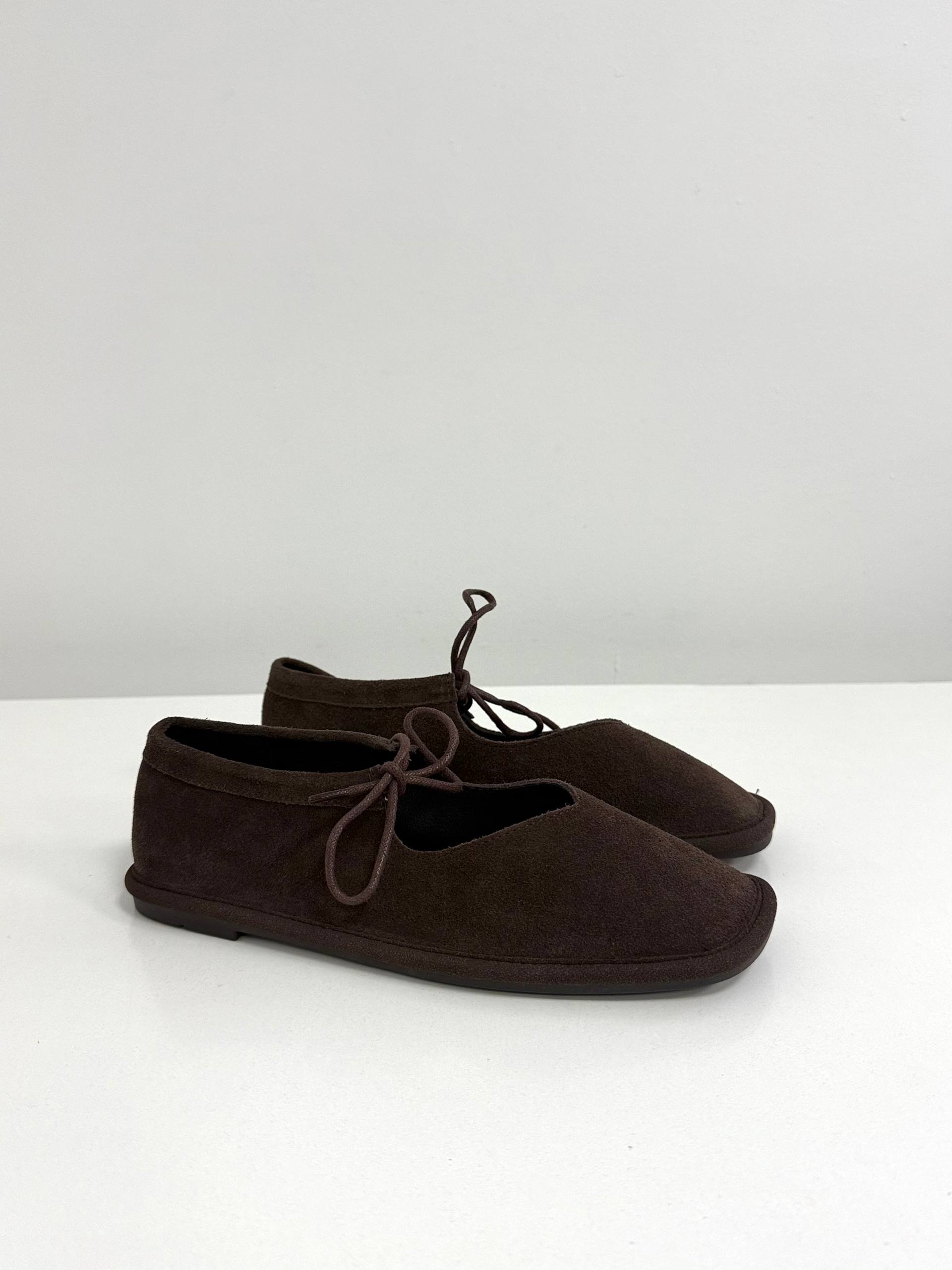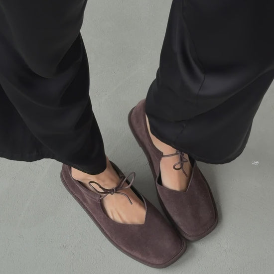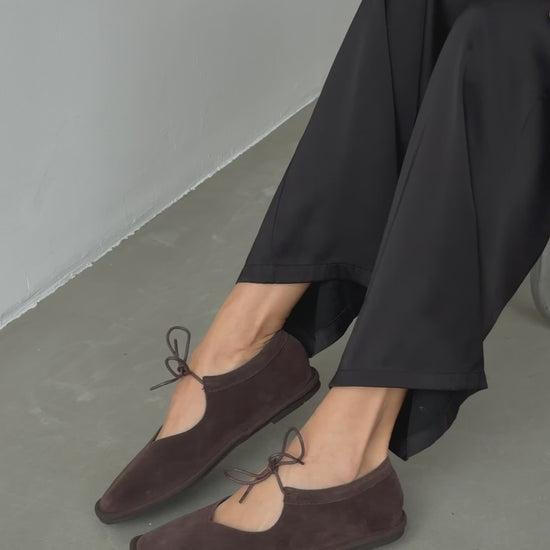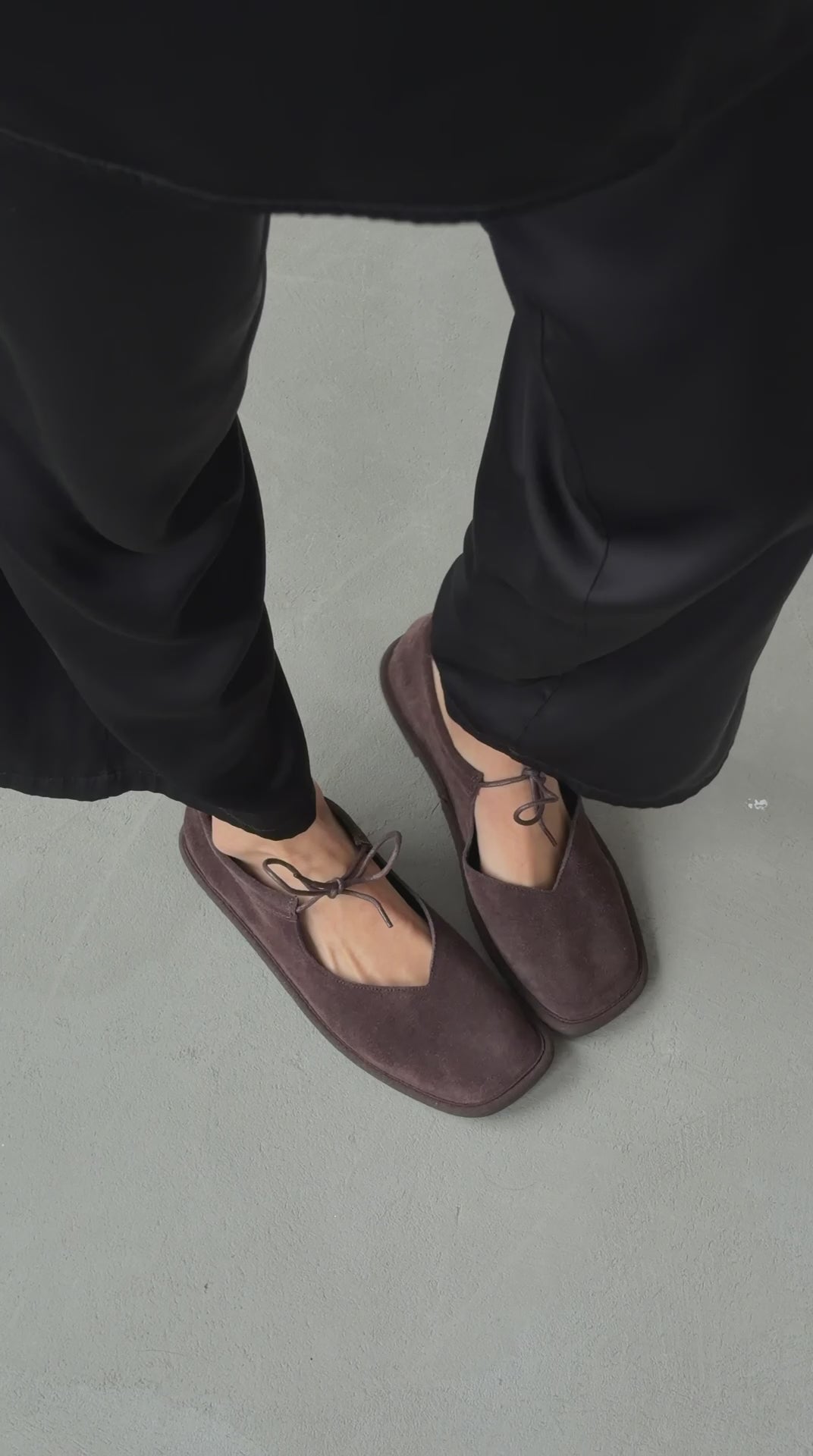 Балетки на зав'язках з анатомічно-розширеним носиком, шоколад