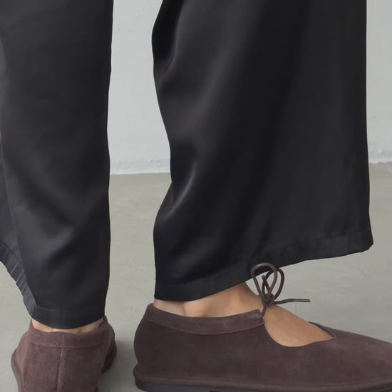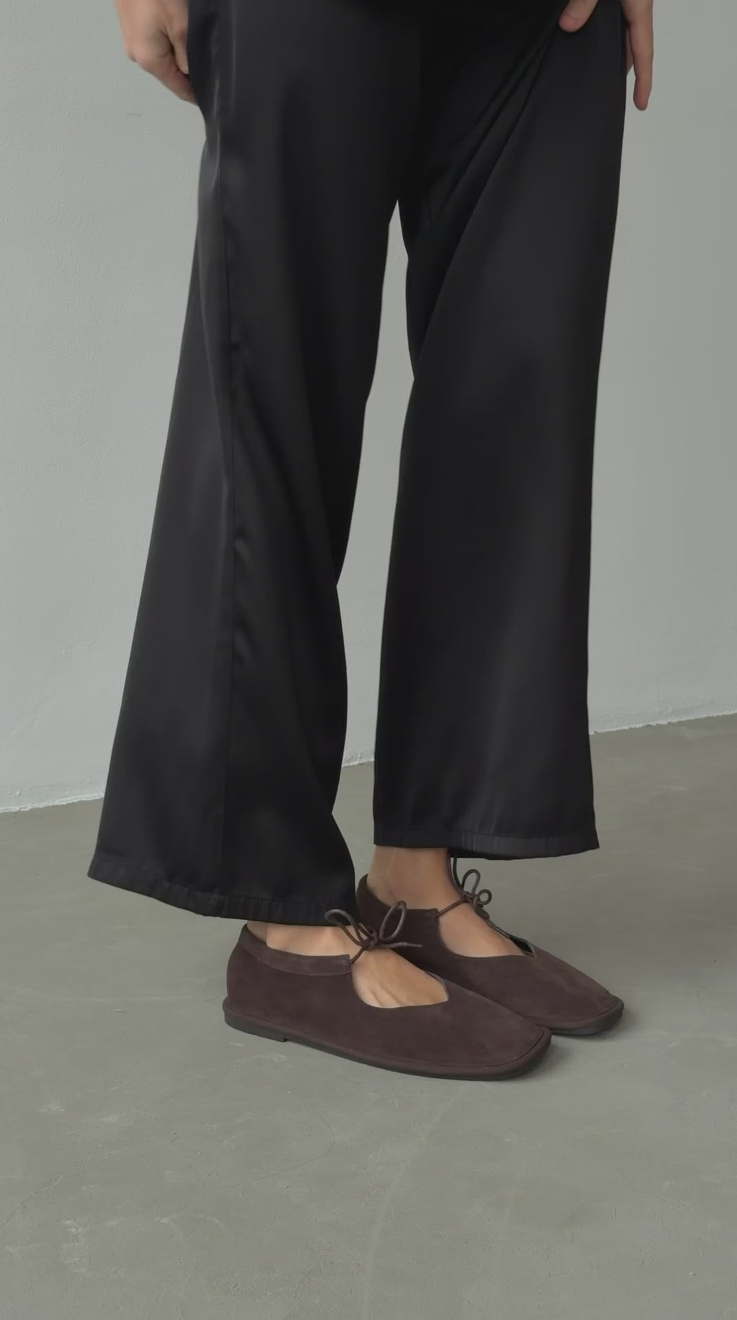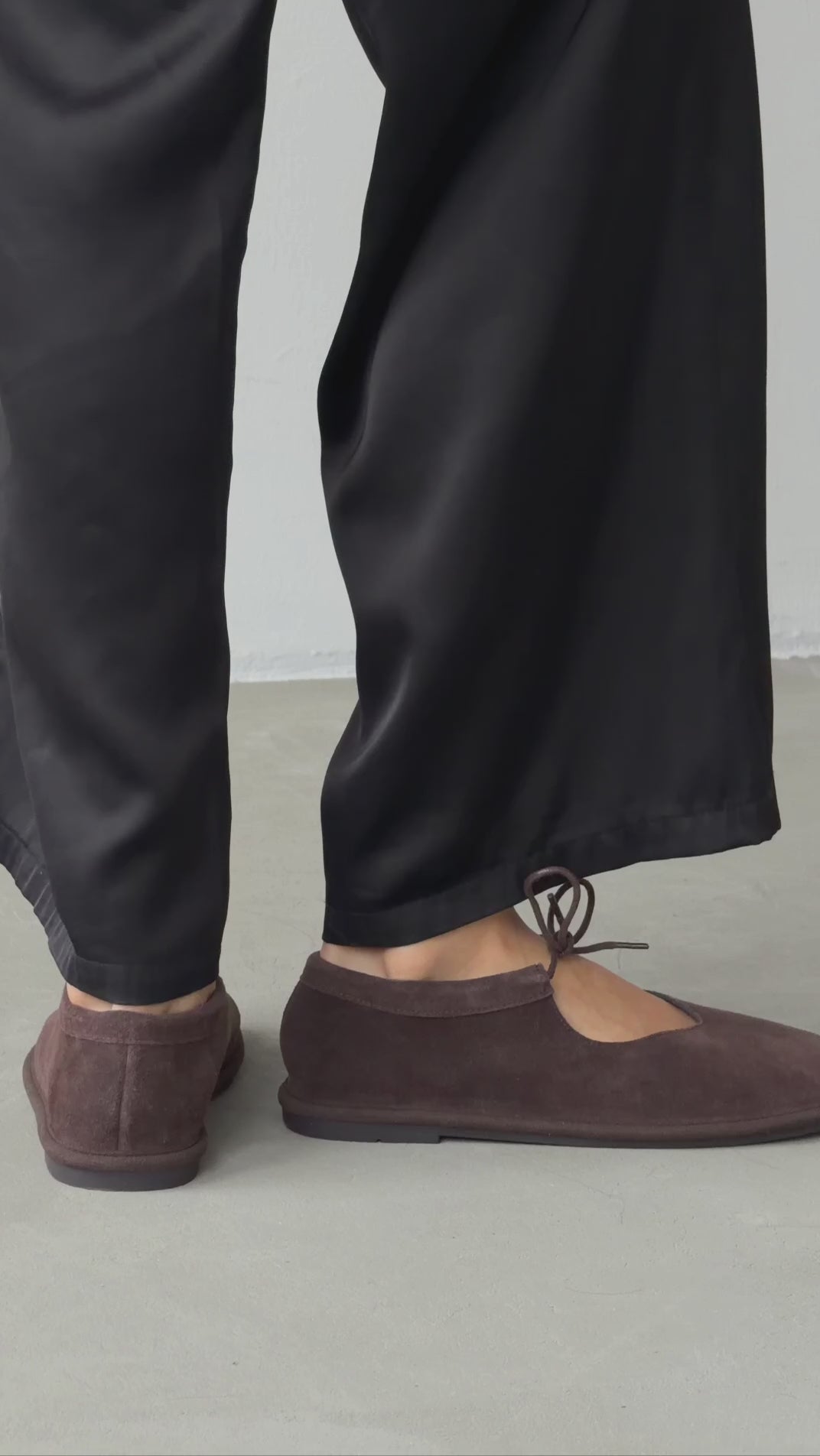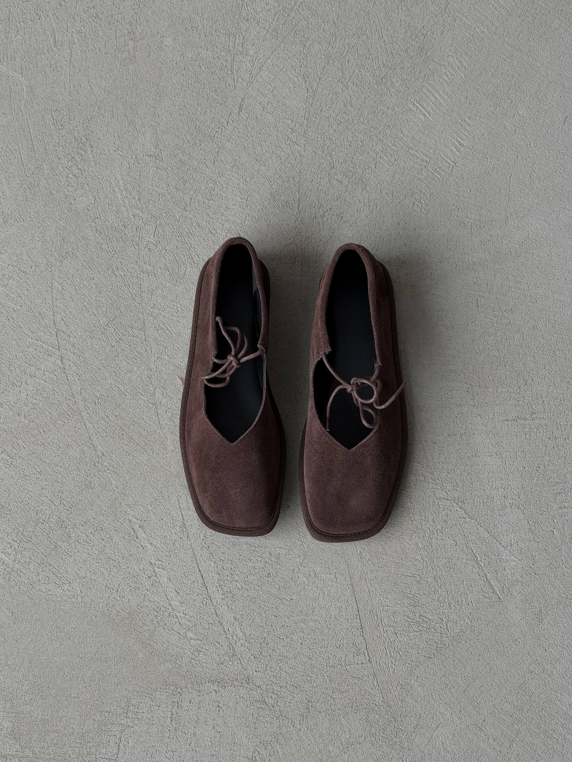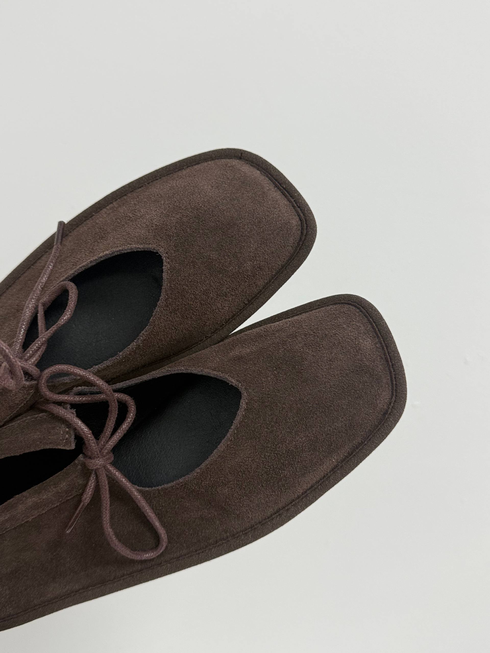 Балетки на зав'язках з анатомічно-розширеним носиком, шоколад