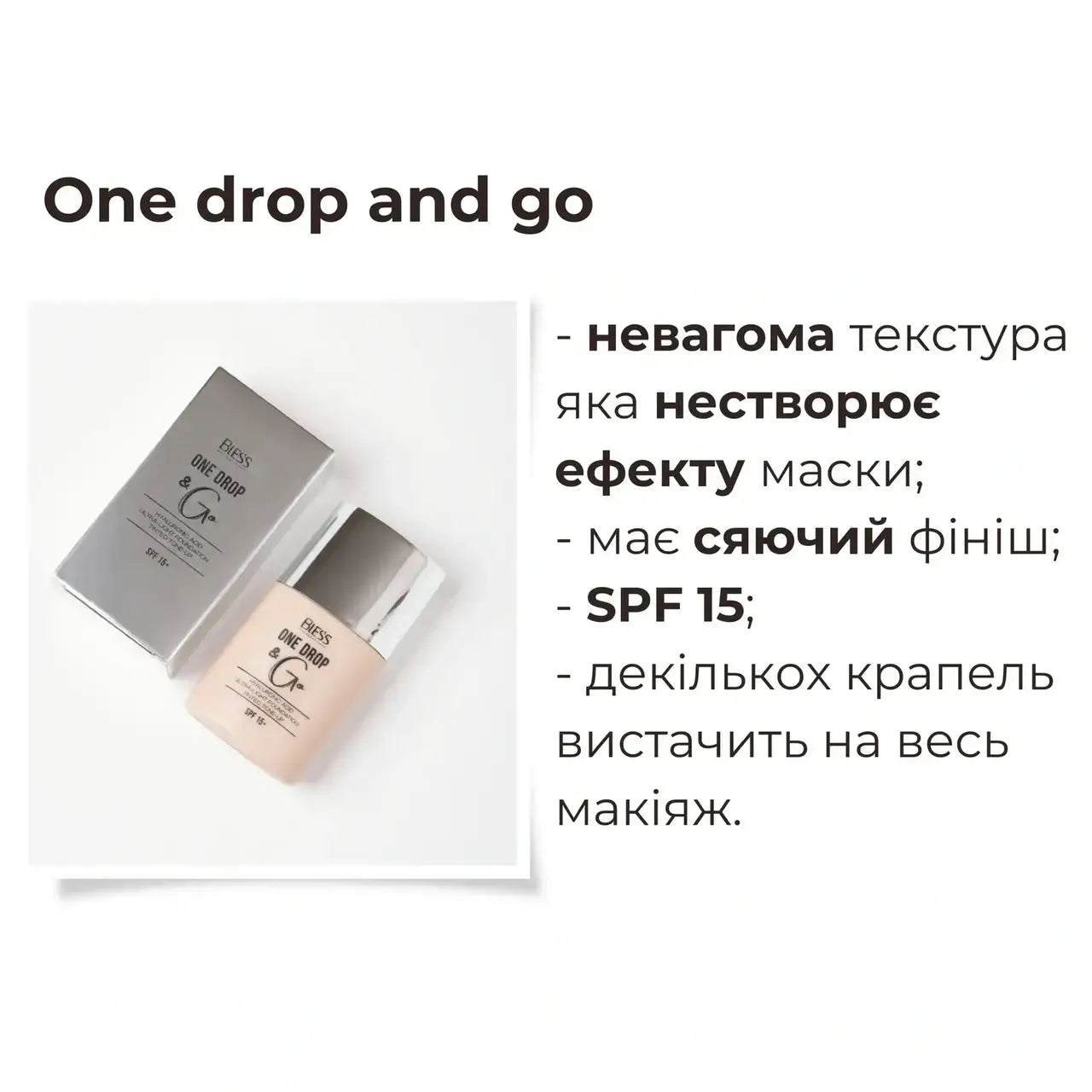 One Drop & Go - це тональна основа з легкою текстурою, яка забезпечує сяючий і освіжаючий фініш. Тільки кілька крапель вистачить для рівного і природного покриття.