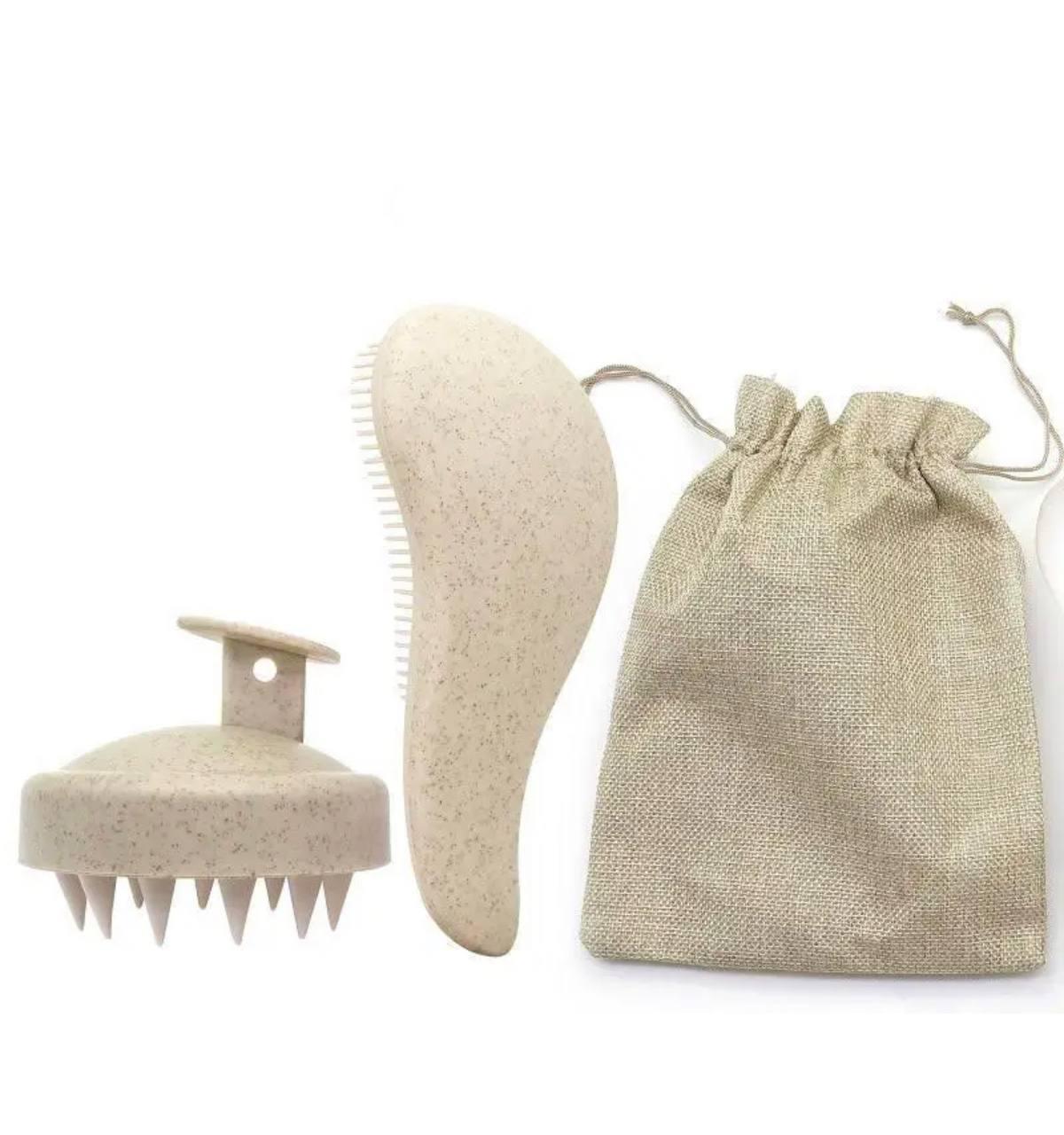 Набір для волосся в мішечку: гребінець і масажна щітка.(пудровий)
