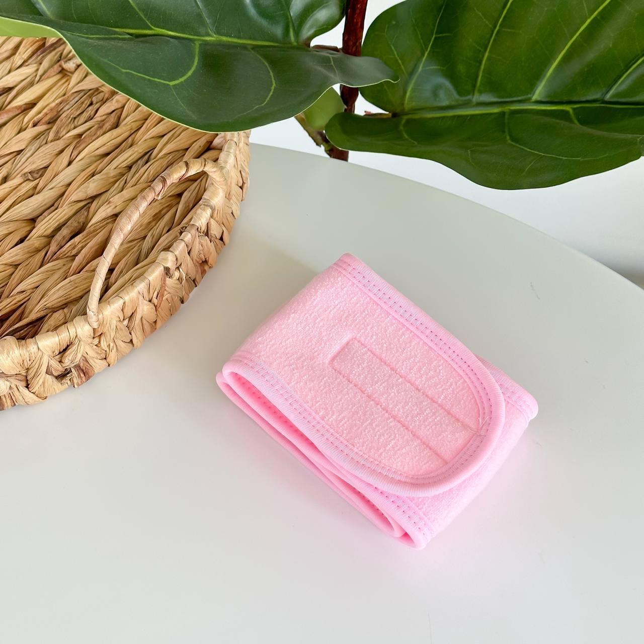 Пов'язка на голову на липучці для вмивання/макіяжу/спорту (РОЖЕВА)