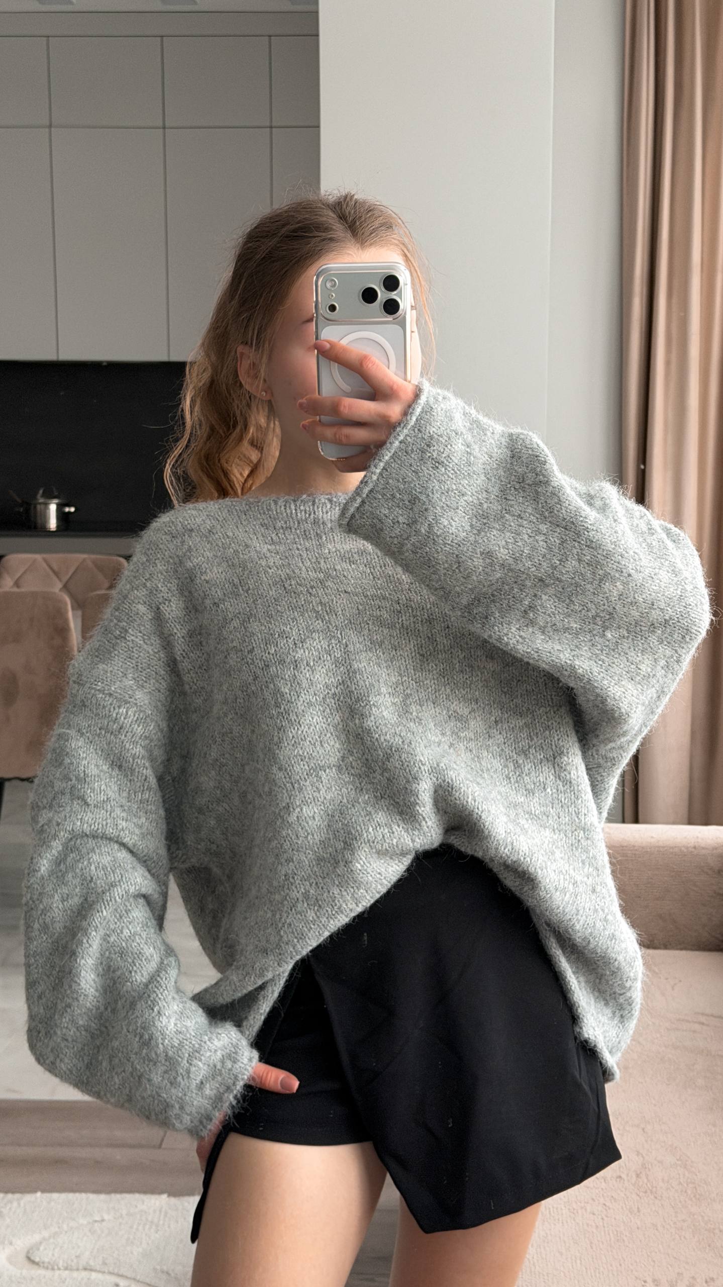 Джемпер з широкими рукавами, сірий