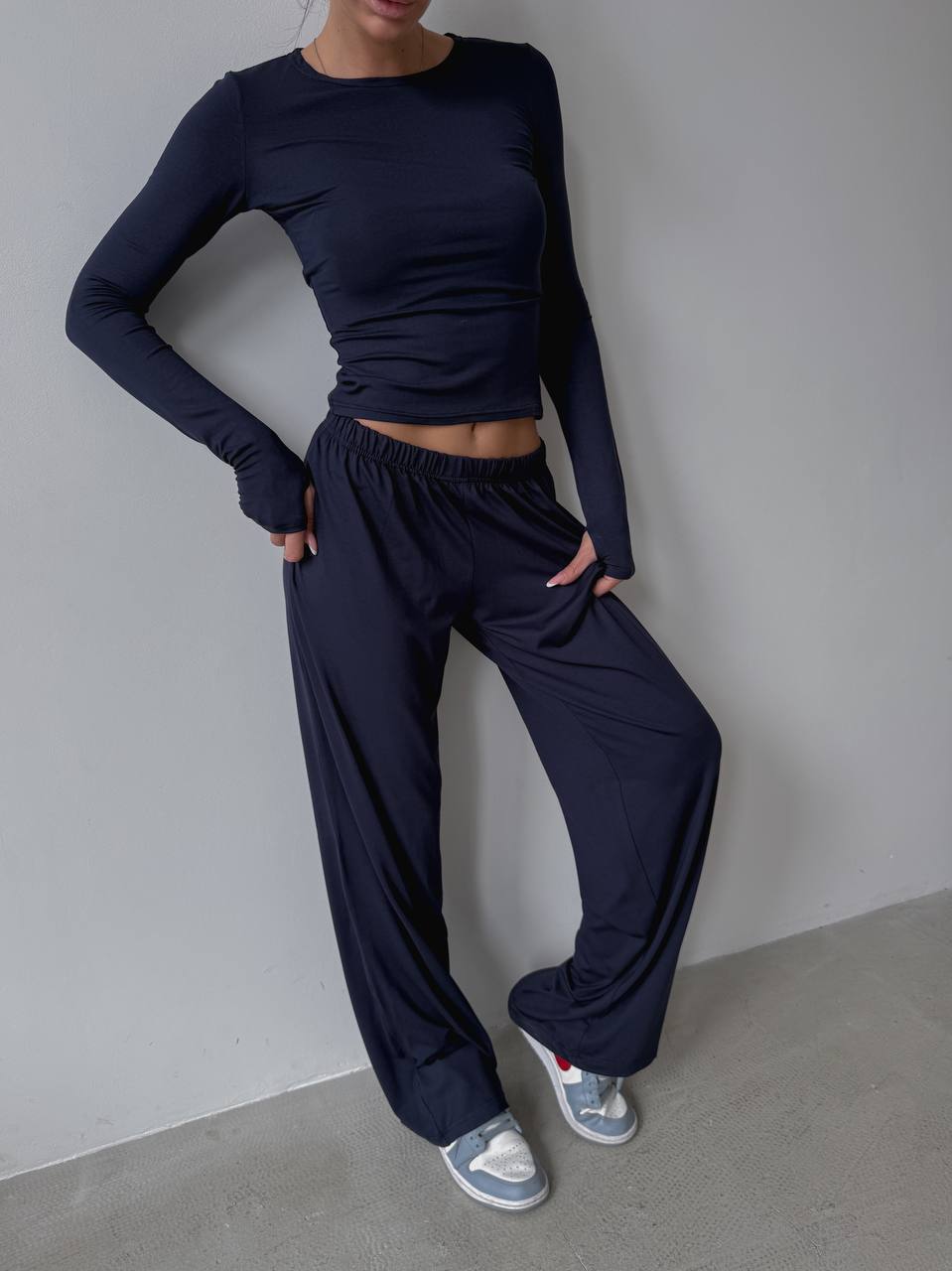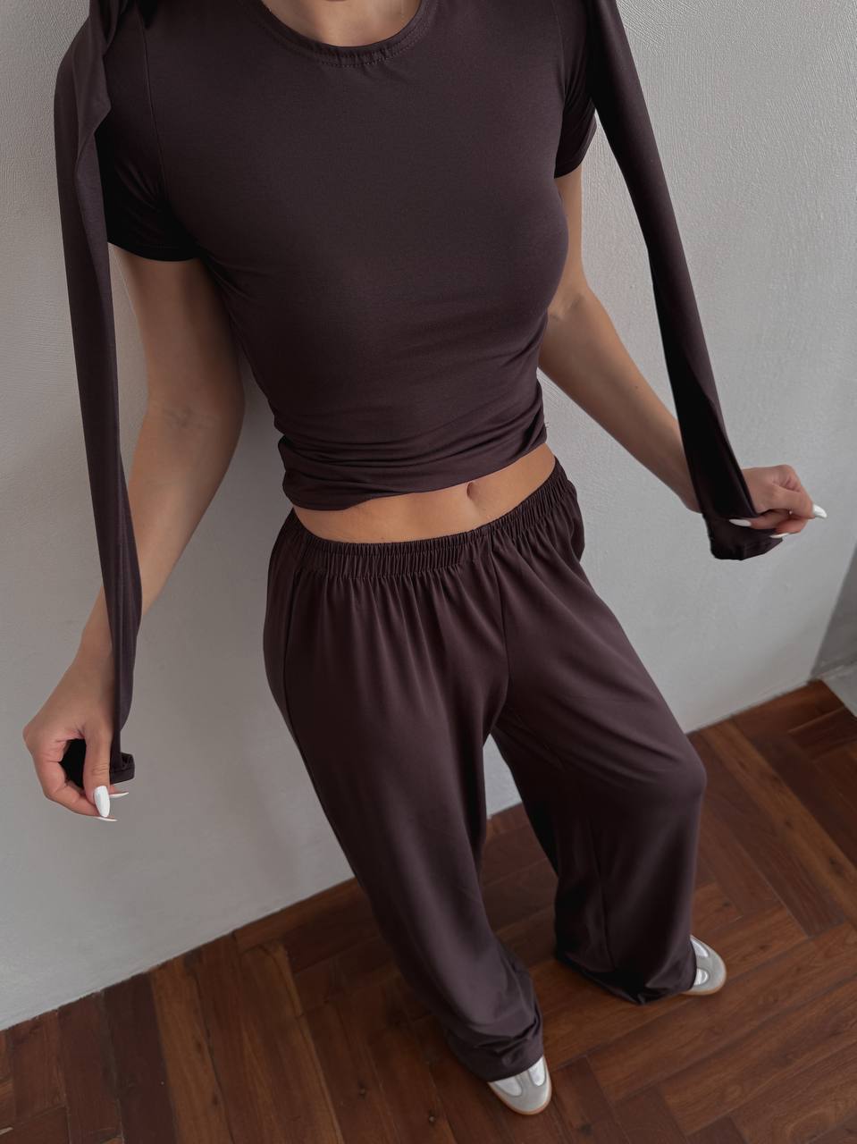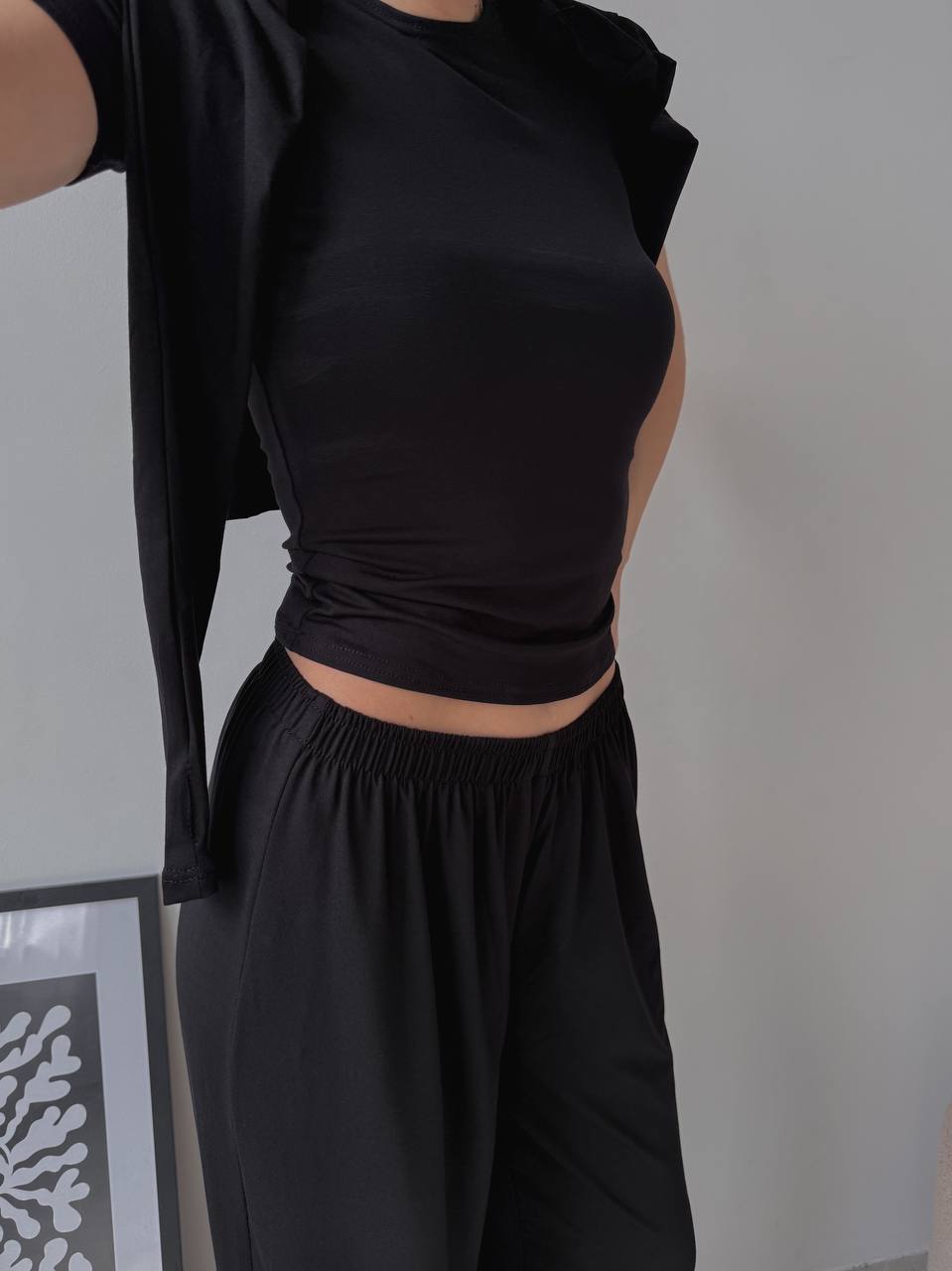 💬Стильна базова трійка з палаццо: ідеальний крій, базові кольори та натуральна «дихаюча» тканина. Футболка скімс, штани палаццо вільного крою та лонгслів з вирізами для пальчиків🔝
