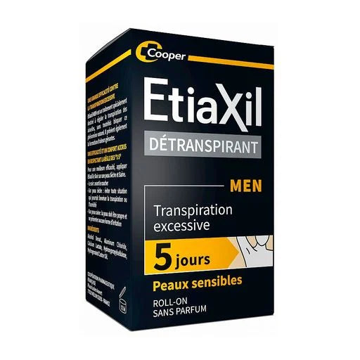 Etiaxil Men Sensitive Roll-On — кульковий антиперспірант для чоловіків з чутливою шкірою, що забезпечує тривалий захист від поту та неприємного запаху. Його унікальна формула діє до 5 днів після одного застосування незалежно від щоденних водних процедур.