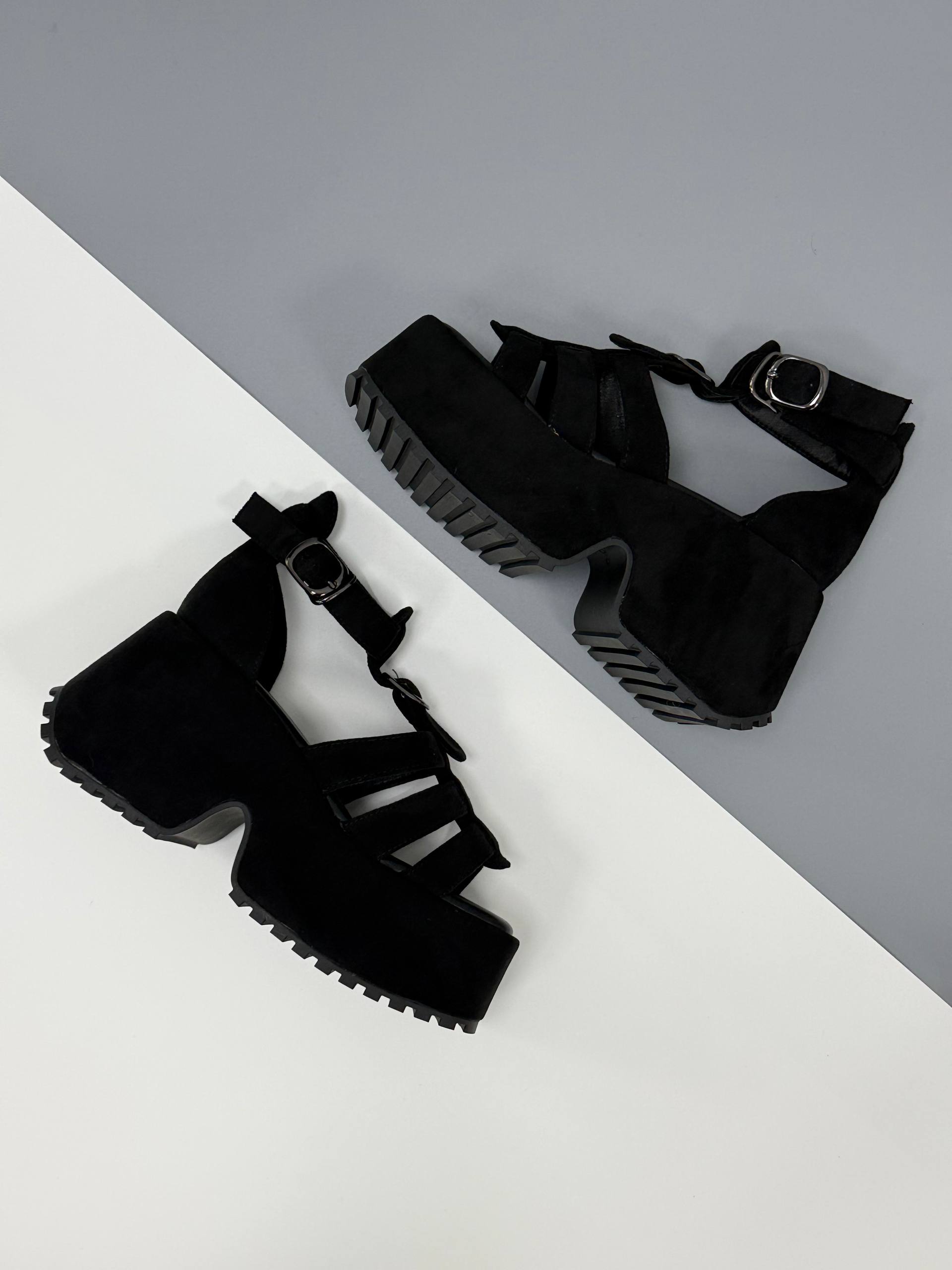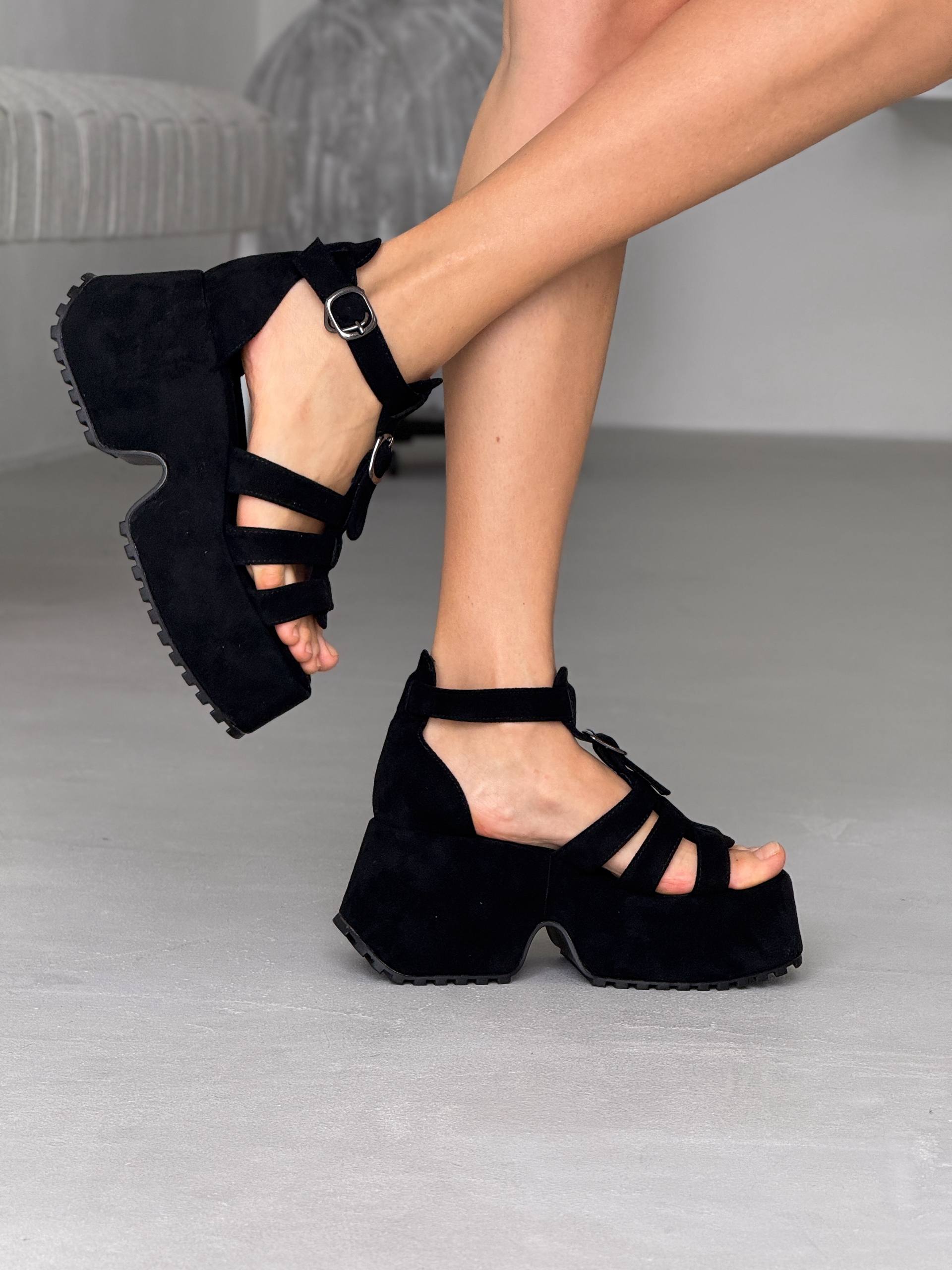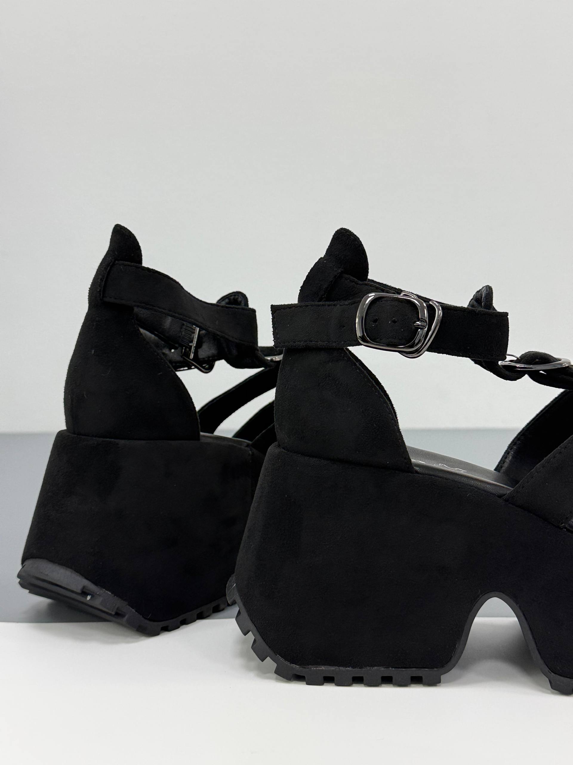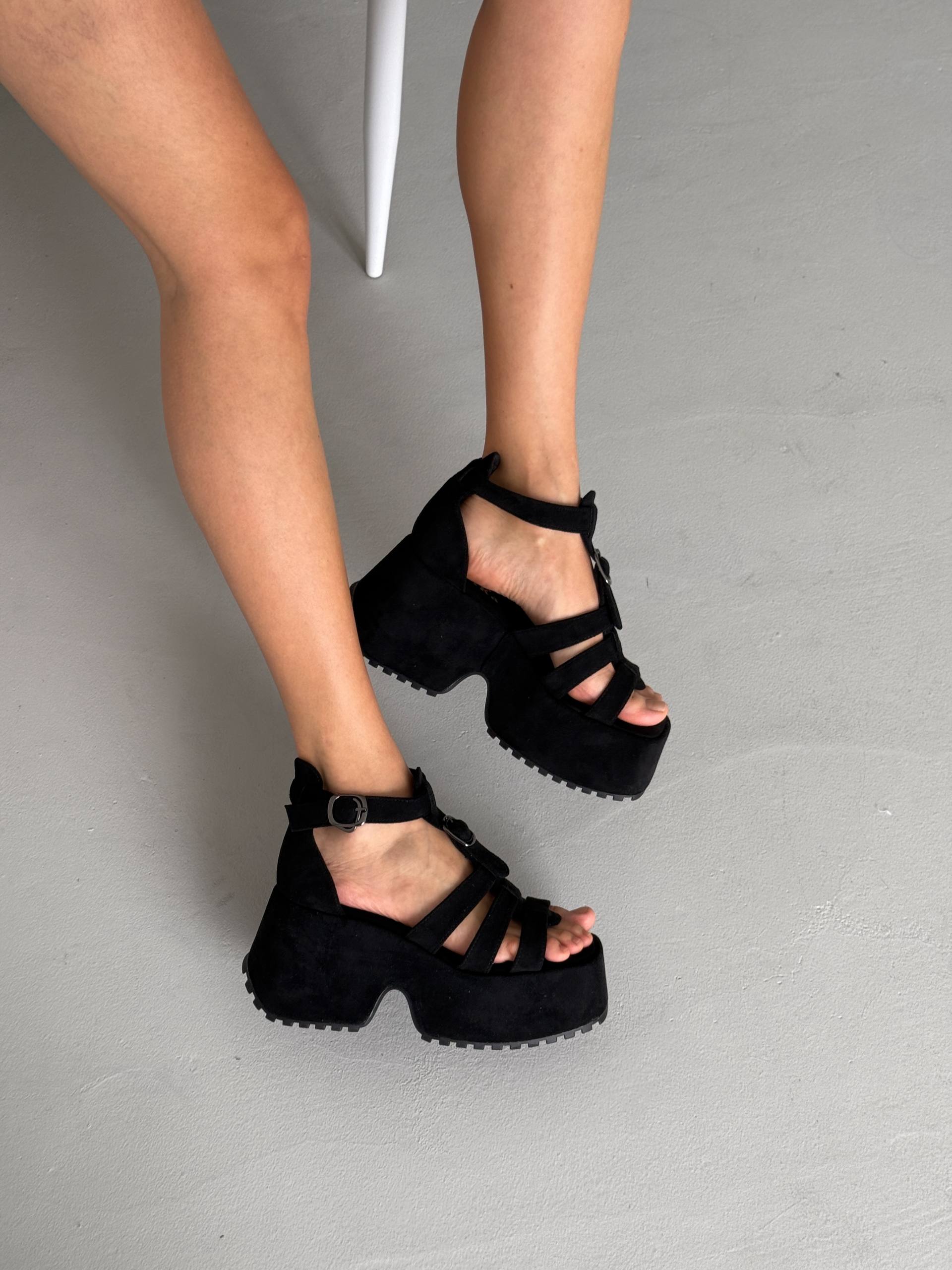 Босоніжки на високій платформі екозамша, чорний