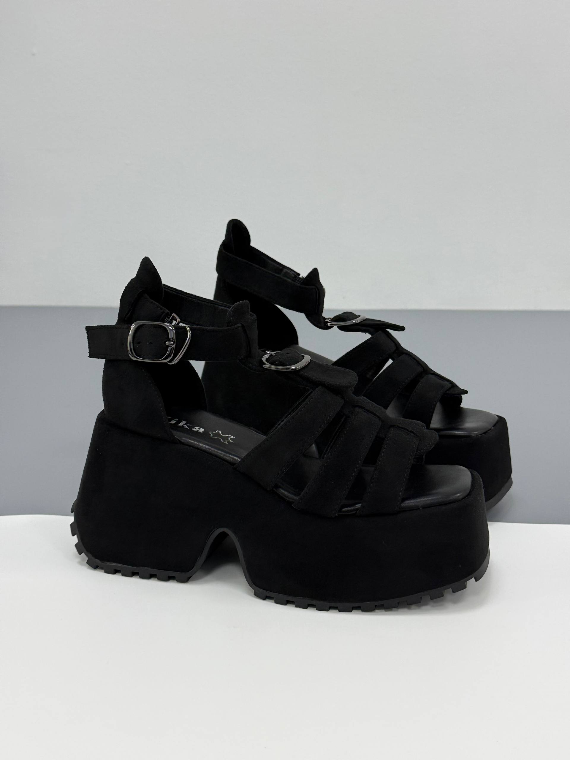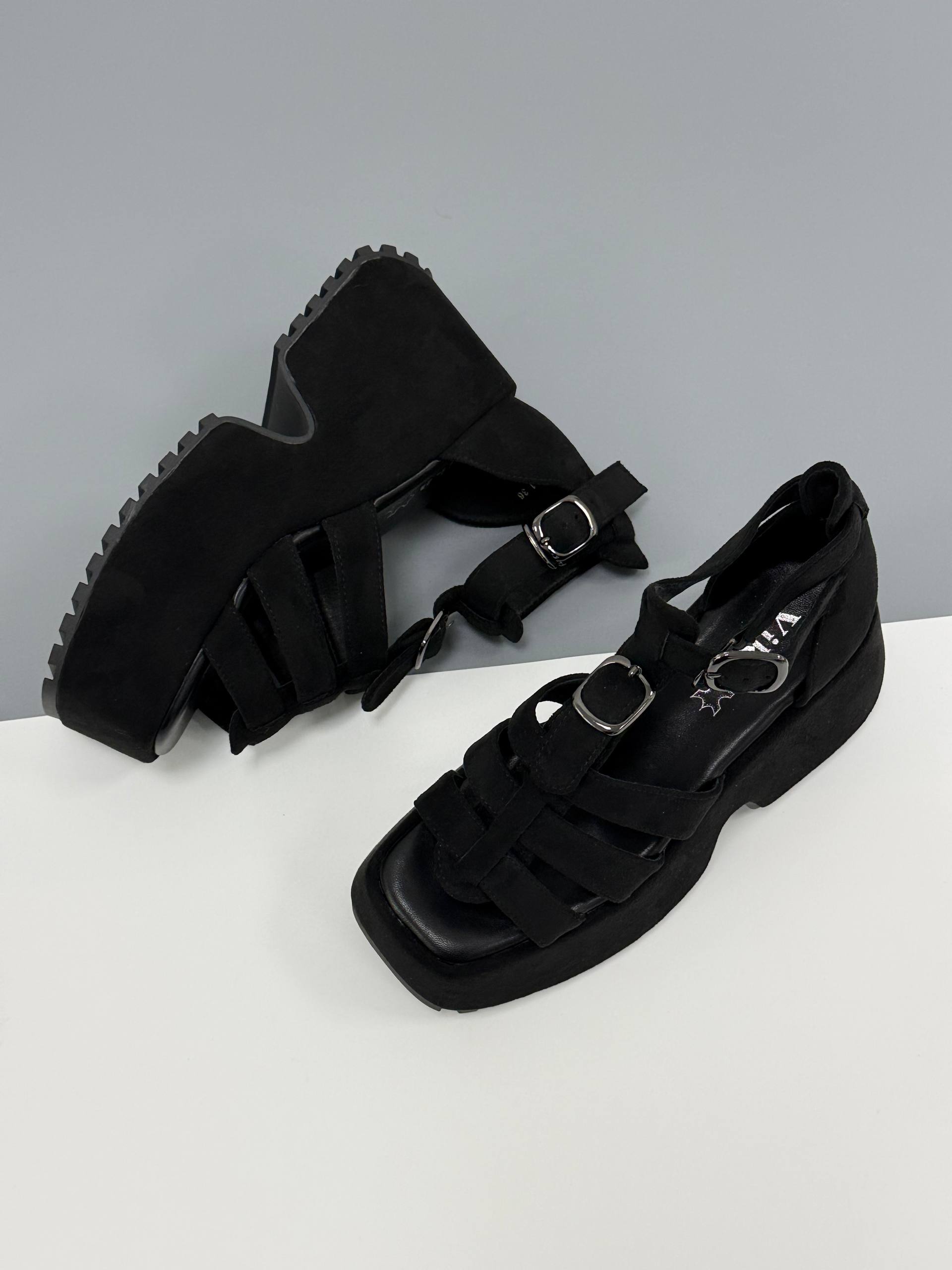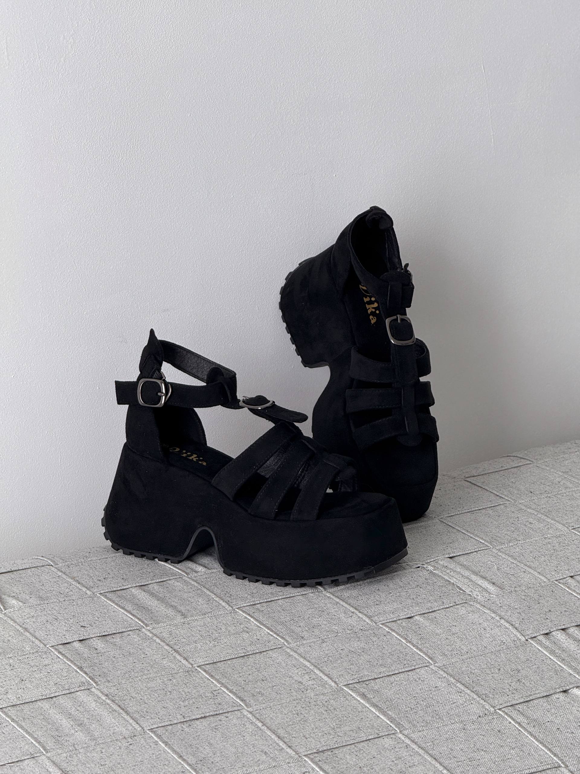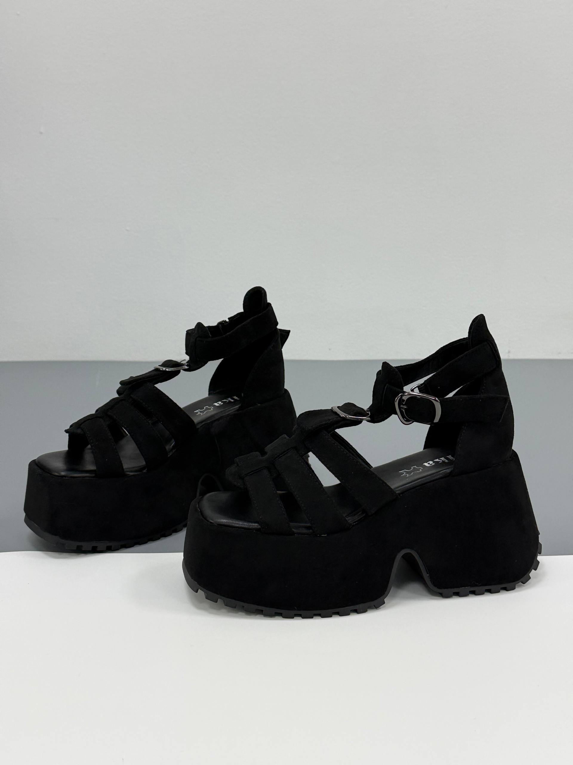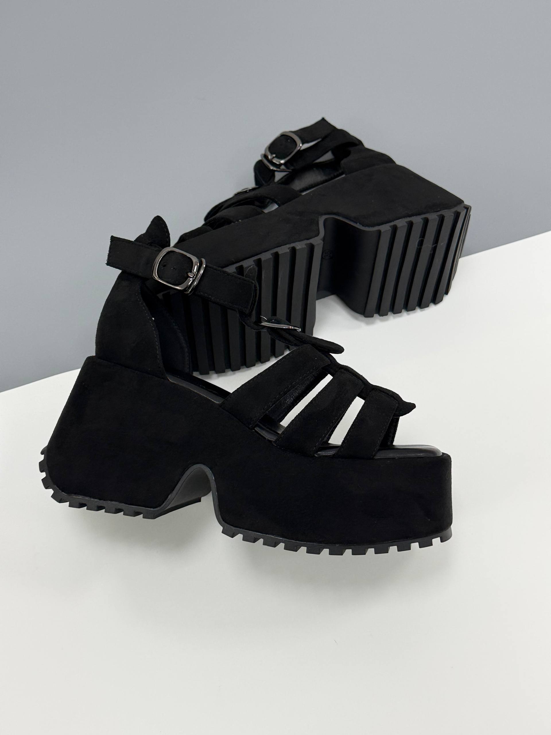 Босоніжки на високій платформі екозамша, чорний