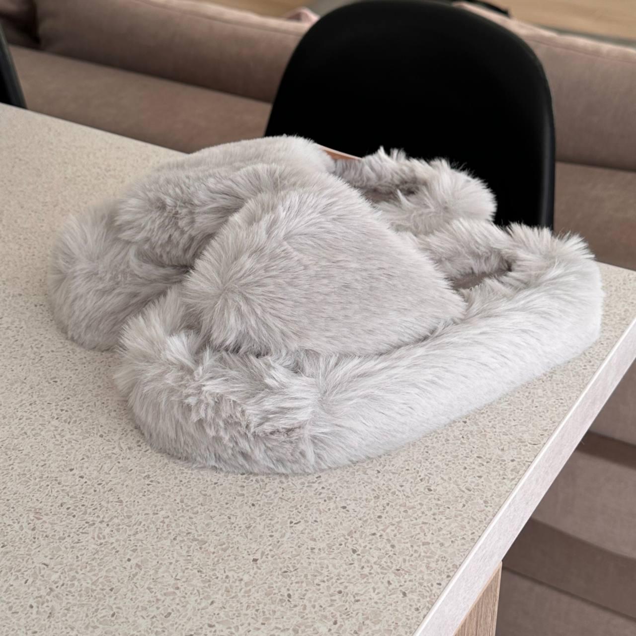 Жіночі капці домашні з штучного хутра - Світло-сірі, розмір 38 см